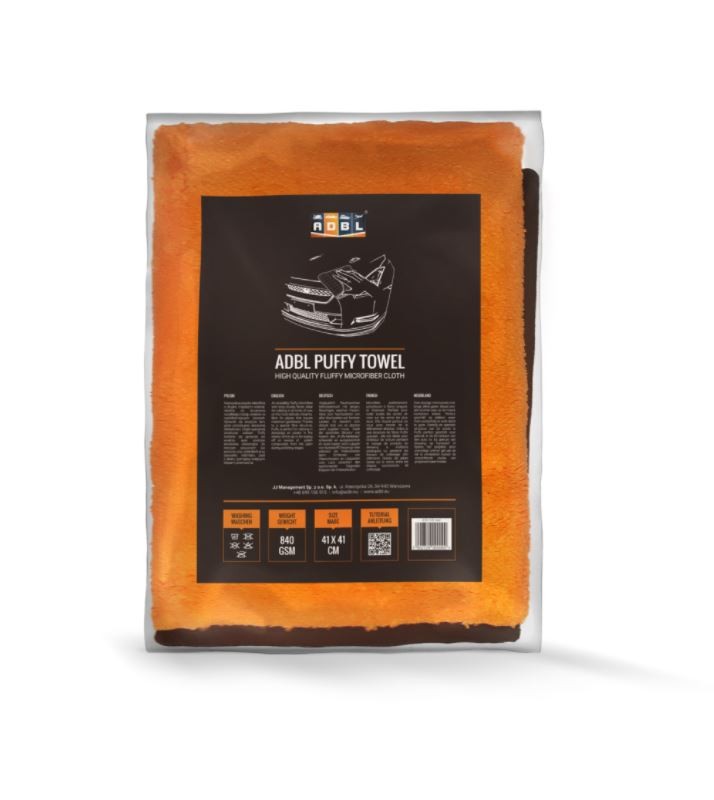 ADBL Puffy Towel е невероятно пухкава микрофибърна кърпа с дълги, здрави влакна, която е идеална за доизблясък на всички видове восък или сийлънт. Благодарение на мекотата си е безопасна за всички видове лакове и не ги надрасква. Поради специалната влакнеста структура Puffy Towel е подходяща за доизблясък на продукти за пластмаси в интериора или за остраняване на остатъци от полиращи и шлифовъчни пасти по време на полирането на лака.