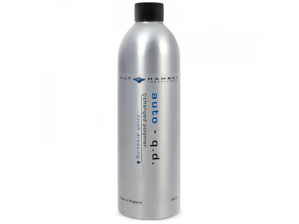 Bilt Hamber Auto-QD е уникален концентриран quick detailer, използваем в комбинация с Auto-Balm, който го покрива, но има и редица други приложения. Безопасно премахва праха и мръсотията без да предизвиква драскотини. Уникално заредените полимери суспендират частици и защитават автомобилните лакове от холографски надрасквания. Може да се използва и като продукт за миене без вода. Пести време и вода. Придава висок гланц и едновременно защитава боята, предотвратява деградация и окисляване на лака от вредното UV лъчение. Също така много ефективно запазва функциите на вече приложени вакси и сепланти, напр. Auto-Balm, Finish-Wax или Hydra-Wax. Auto-QD е на водна основа, безопасен за всички видове автомобилни лакове и не оставя прах. Не полепва по пластмасови или гумени части и не оставя нежелан бял филм, както при някои други препарати, а напротив - допълнително ги защитава. Може да се разрежда с вода за работа с восък Auto-Balm или след миене като превенция срещу натрупване на варовик. Голямо икономично 5 литрово опаковане.Препоръчано разреждане на Bilt Hamber Auto-QD