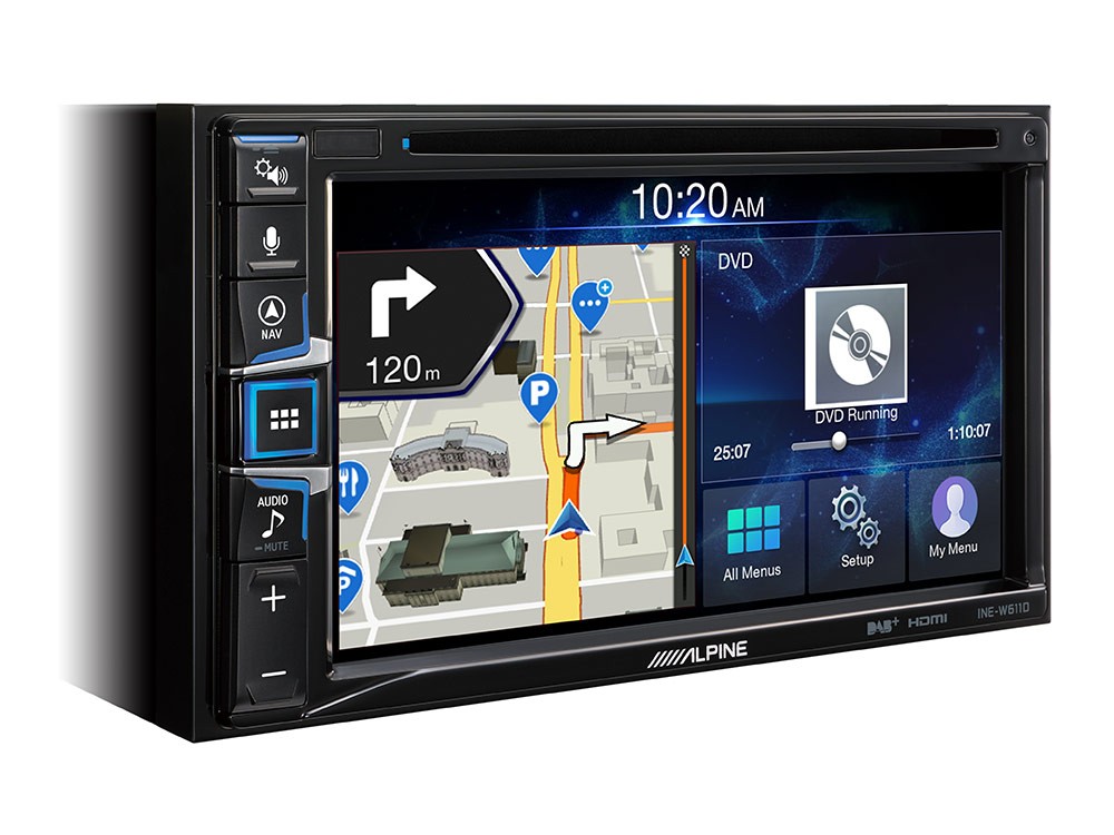 Новата навигационна система INE-W611D е проектирана за клиенти с леки автомобили и кемпери, които предпочитат инсталиране в таблото пред система в таблет стил. Това устройство е впечатляващо all-in-one решение с вградена навигация iGo Primo с картографска основа TomTom и със CD/DVD устройство. 6,5" тъчскрийн показва ясни навигационни карти, менюта и филми. Насладете се на цифрово радио DAB+ и използвайте в автомобила си одобрени приложения чрез Apple CarPlay и Android Auto. Възползвайте се от предимствата на два USB порта, които позволяват едновременно зареждане на телефон и възпроизвеждане на музика от USB памет. За собственици на по-големи кемпери и товарни автомобили препоръчваме INE-W611DC (версията с интегриран софтуер за товарни автомобили и кемпери).