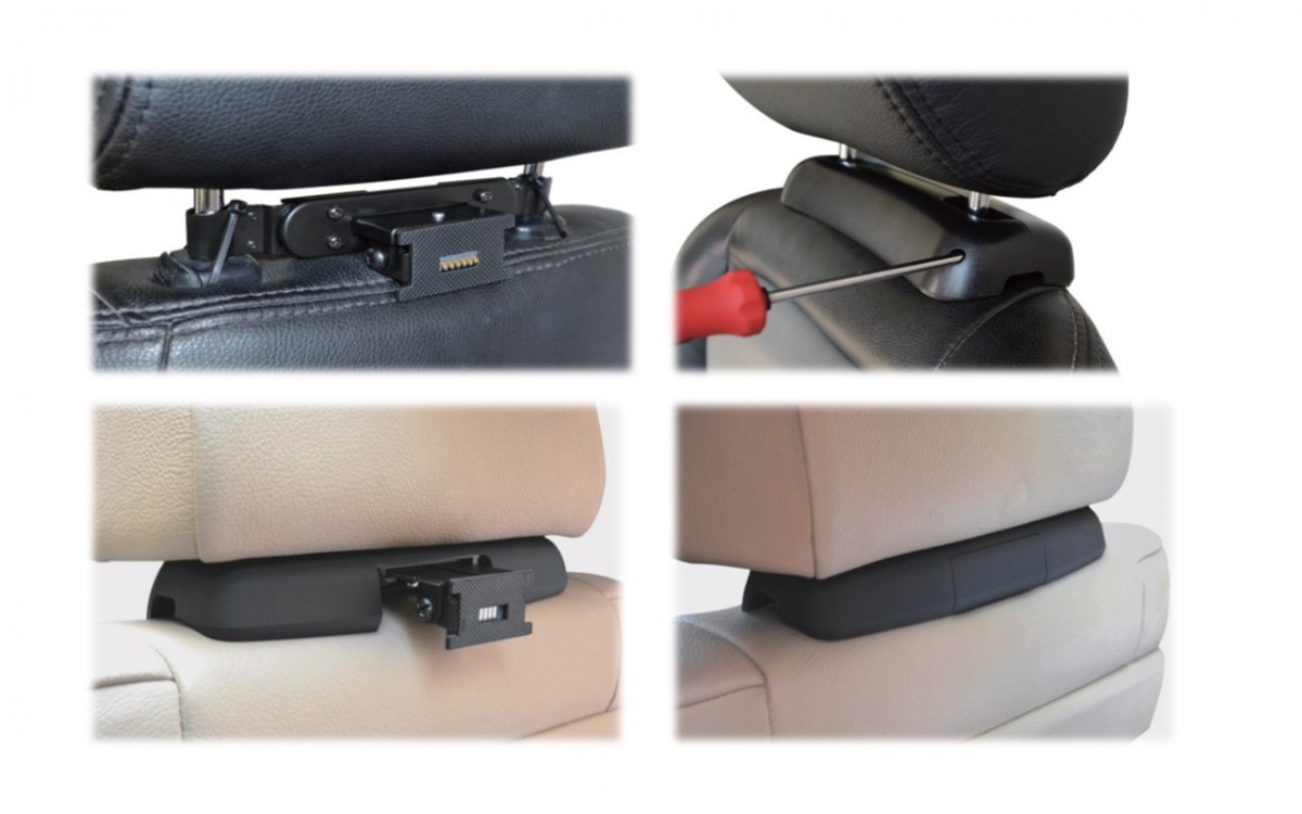 - елегантна инкапсулирана стойка за подглавник с лесно отстраняване на монитора от стойката (захранване, AV вход/изход свързани чрез конектор на стойката)