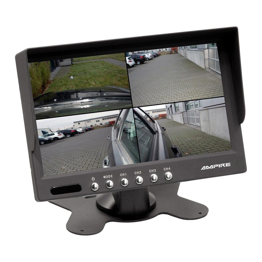 HD Quad монитор 17,8 cm (7 '') с възможност за свързване на до 4 камери или видео сигнала. Разбира се, към монитора може да се свърже и сигнал от DVD плейър или DVB-T тунер за забавление на пътниците по време на пътуване. Всички 4 източника на сигнал могат да се превключват или чрез IR дистанционно управление, или чрез захранване. Мониторът е също така оборудван с аудио вход (RCA) за свързване на камера с вграден микрофон.