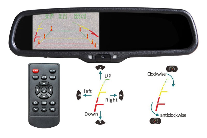 Мониторът, разположен в задното огледало, служи за показване на изображението от паркинг камера или за показване на изображението от DVD плейър. Огледалото е поставено на предното стъкло на мястото на оригиналното огледало. Лесен монтаж без намеса в интериора на автомобила. Изображението от паркинг камерата се активира автоматично при включване на задна предавка или при свързване на видеосигнал.