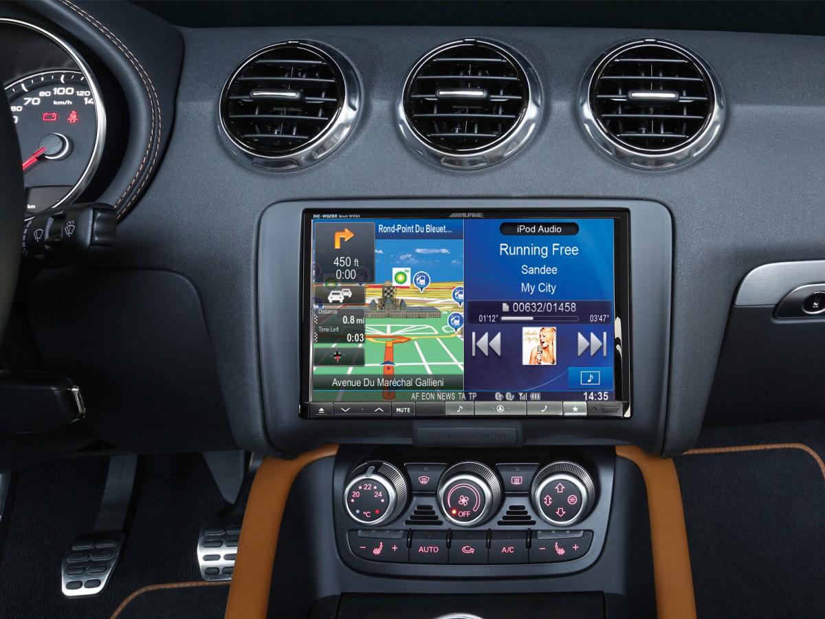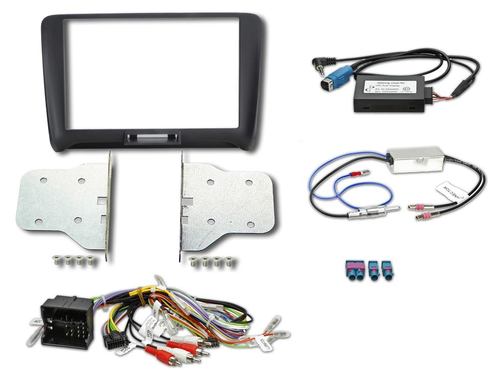 Монтажен комплект за Alpine 8“ навигация за Audi TT (8J) - KIT-8TT. В комплекта са включени части за механичен монтаж, както и дистанционно управление от волана с интерфейс, който също осигурява CAN към аналогови конверсии за ACC, импулси от скоростта на автомобила и ръчна спирачка. Антенният адаптер е част от опаковката. Съдържа и интерфейс, който поддържа показването на информация на дисплея на радиото, както и антенен адаптер.| Каталожен номер | KIT-8TT |