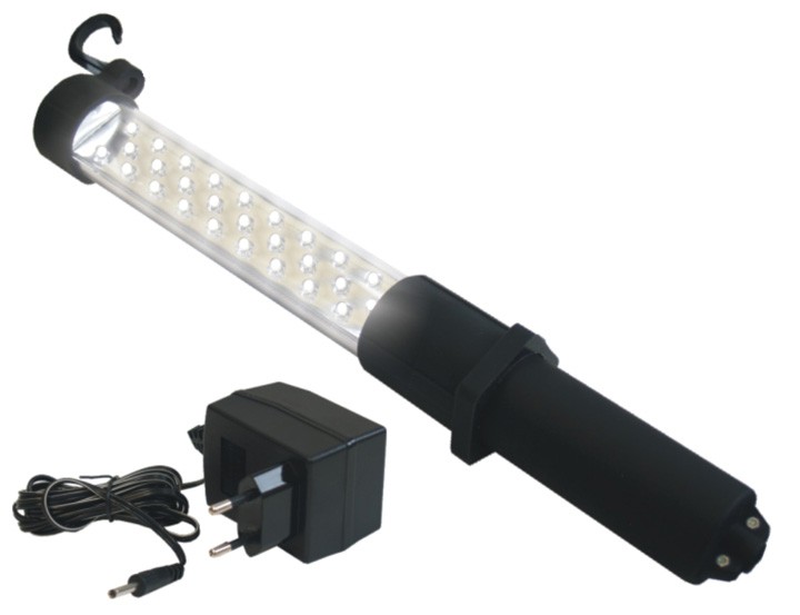 LED монтажна лампа с допълнително дълъг кабел и въртяща се кукичка (35 LED). Поликарбонатен корпус за устойчивост на удари, водоустойчивост и устойчивост на масло. Доставя се с мрежов и автомобилен заряден адаптер.