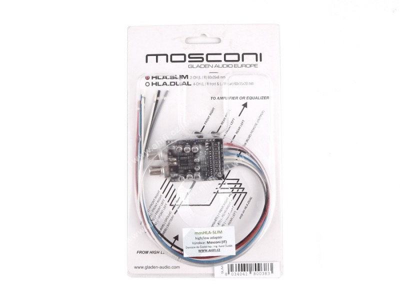 Марков high/low адаптер, който препоръчваме да използвате, ако свързвате качествен усилвател към оригиналното автомобилно радио (ок. от 5 000,- Kč и повече). High/low адаптерът конвертира сигнал от високо ниво към ниско и е много важен елемент при монтаж на аудио в автомобил.Основни предимства на high/low преобразувателя HLA-SLIM