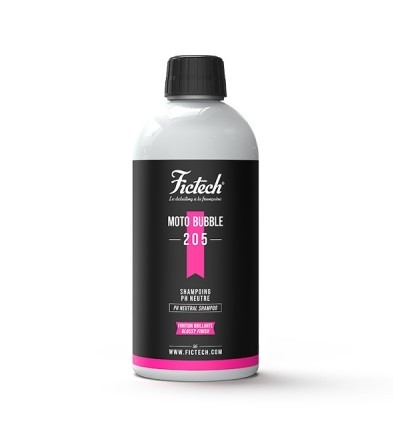 Moto Bubble е pH неутрален шампоан, който е специално предназначен за измиване на мотоциклети. Шампоанът може да се използва както за лъскави, така и за матови лакове. След изплакване оставя повърхността на мотоциклета блестяща и благодарение на състава си, който отблъсква водата, значително съкращава времето за съхнене.