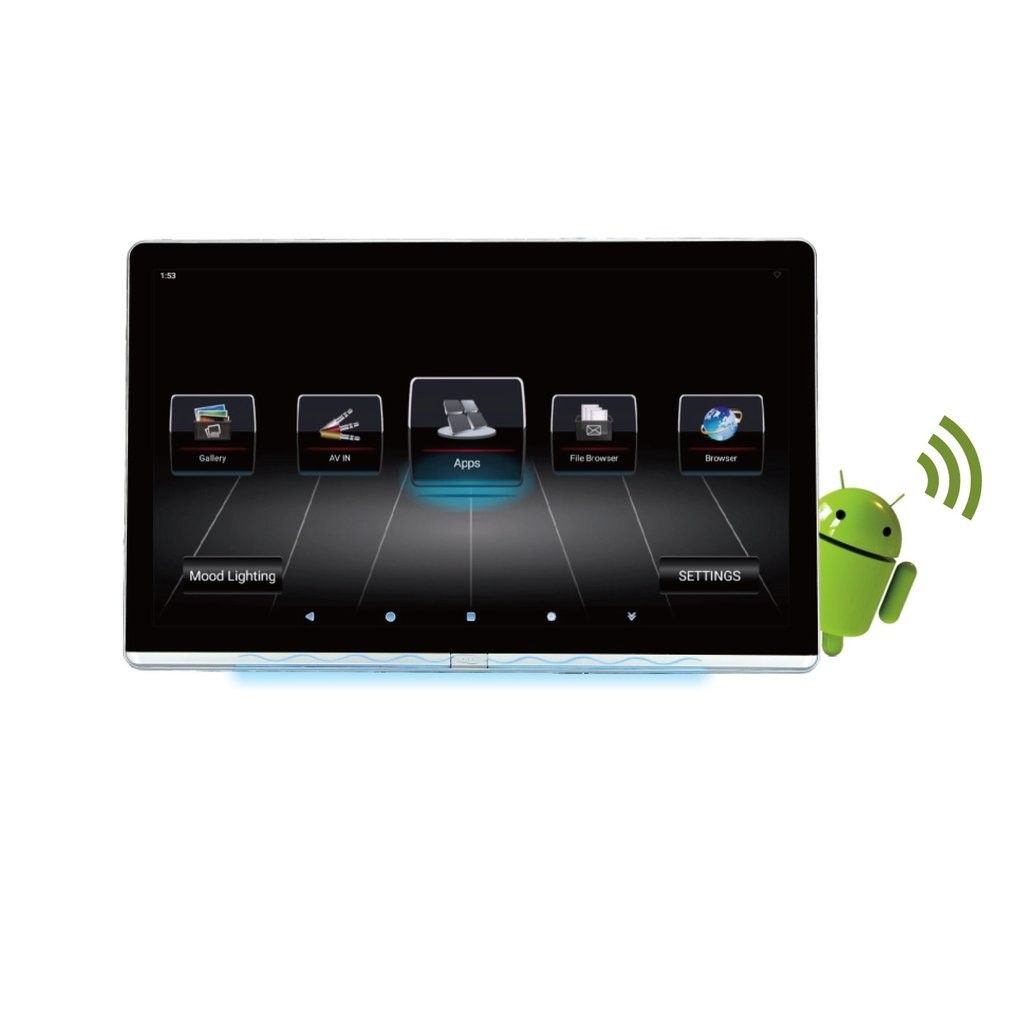 Мултимедиен сензорен монитор с тънък дизайн (3GB+16GB, 8K видео), с операционна система Android 10, с диагонал 12.3", входове HDMI / USB / SD и вградени високоговорители, е идеален избор за безопасно гледане на филми или видео от пътниците на задните седалки. Предназначен е за монтаж на предната облегалка за глава. Устройството разполага с Bluetooth и Wi-Fi и позволява използване на функцията Miracast за безжично огледално споделяне на екрана от мобилен телефон, съдържа чешко меню, управление на филма чрез докосващи жестове, BT слушалки в комплекта. Технологията за обработка на изображението MACE-PRO4 може да елиминира шума от телевизионно или мрежово видео, премахва загубата на детайли и цветове при предаването на видеосигнала, като по този начин подобрява качеството на изображението и показва всички детайли. Така се възпроизвежда естествено и детайлно изображение.