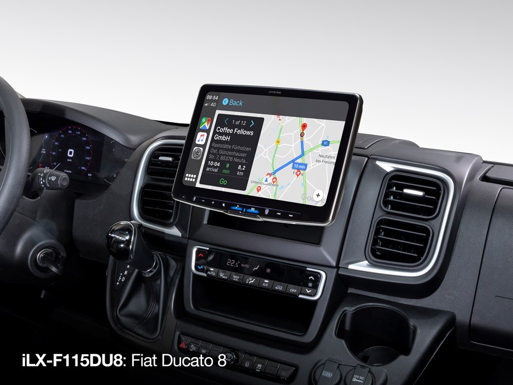 ILX-F115DU8 Alpine Halo11 за Fiat Ducato 8 е второто поколение на световноизвестната продуктова линия Halo на Alpine, оборудвано с 11-инчов сензорен екран с висока разделителна способност WXGA и се доставя с всички необходими монтажни части (като plug-and-play кабелен сноп, CAN интерфейс, рамка и др.) за Ducato 8. Супертънкият дисплей сякаш плава над таблото и може да бъде настроен по различни начини, за да има най-добра позиция. С тази невероятна главна единица можете да се насладите на безжична съвместимост с Apple CarPlay и Android Auto (с кабел), цифрово радио DAB+, възпроизвеждане на видео от USB, възпроизвеждане на Hi-Res Audio, hands-free и стрийминг на звук чрез Bluetooth и много повече. Можете да избирате от широка гама онлайн навигационни приложения, като Google Maps, и да ги използвате на екрана на Alpine чрез Apple CarPlay и Android Auto. Донесете извънредно качествен звук в своя автомобил! Alpine Halo11 е първата главна единица в света с вграден усилвател клас D и предлага широк набор от професионални функции за настройка на звука, като 2-посочен X-over, параметричен еквалайзер, цифрова времева корекция и много други.Основни характеристики