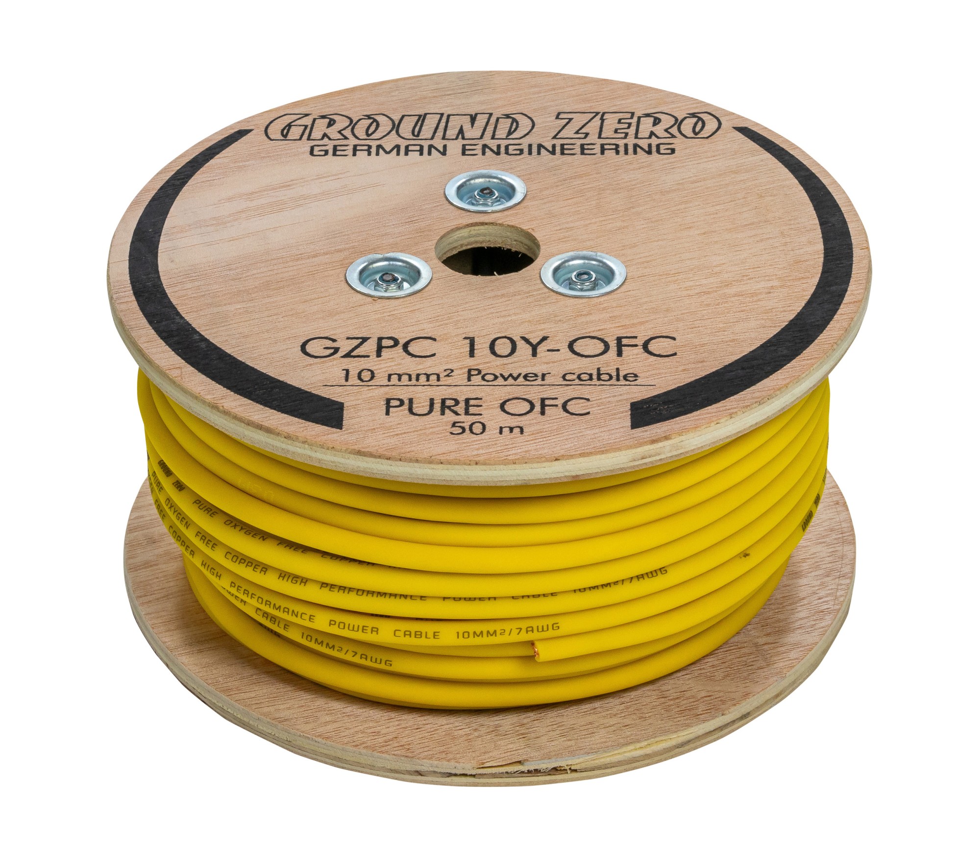 Ground Zero GZPC 10Y-OFC je vysoce kvalitní napájecí kabel s průřezem 10 mm², určený pro náročné audioinstalace. Vodič je vyroben z čisté bezkyslíkaté mědi (OFC – Oxygen Free Copper), která zaručuje minimální přechodové odpory, vysokou vodivost a dlouhodobou stabilitu i při vysokých proudech. Oproti levnějším CCA kabelům poskytuje výrazně nižší ztráty napětí, lepší přenos výkonu a vyšší odolnost vůči oxidaci. Díky vysoce ohebné izolaci se s kabelem snadno pracuje i v stísněných prostorech vozidla. Robustní žlutý plášť zajišťuje mechanickou odolnost, ochranu proti oděru a dlouhou životnost i při profesionálních instalacích. Kabel je navinut na dřevěné špulce a dodáván po 1 metru.
