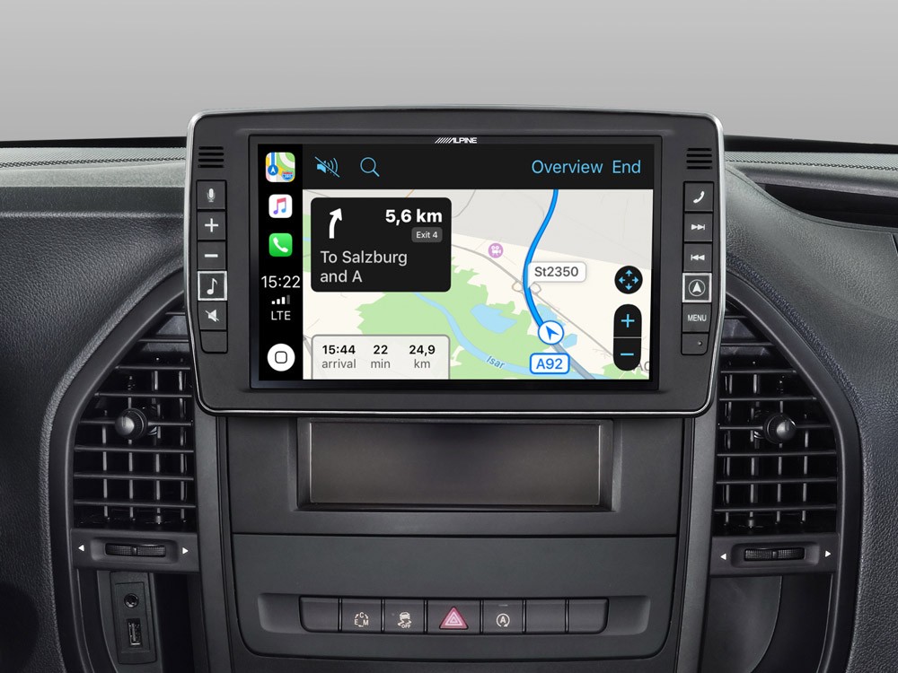 Alpine представя навигационна система Alpine Style от 3. поколение за Mercedes Vito (447). Моделът X903D-V447 е оборудван с огромен 9" сензорен екран, който е поставен извън таблото, за да бъде перфектно достъпен от мястото на водача. Това прави контролирането на навигационните карти и други функции много лесно. Също така е оборудван с много по-бърз навигационен CPU и по-голяма системна памет за безпроблемна работа. Сега можете също да приближавате и отдалечавате навигационната карта чрез жест със сгъване на пръстите. Системата включва и първокласната навигация iGo Primo NextGen с карти TomTom. Най-хубавото е, че получавате 3 години безплатни актуализации на картите. Можете също така лесно да инсталирате допълнителни бази данни с къмпинги, за да имате перфектна POI база за вашите нужди при къмпинг. X903D-V447 включва и съвместимост с Apple CarPlay и Android Auto. Ако търсите добра навигационна система за Mercedes Vito, която е лесна за използване, лесно достъпна от мястото на водача и има голям дисплей - вече не търсете.Основни характеристики