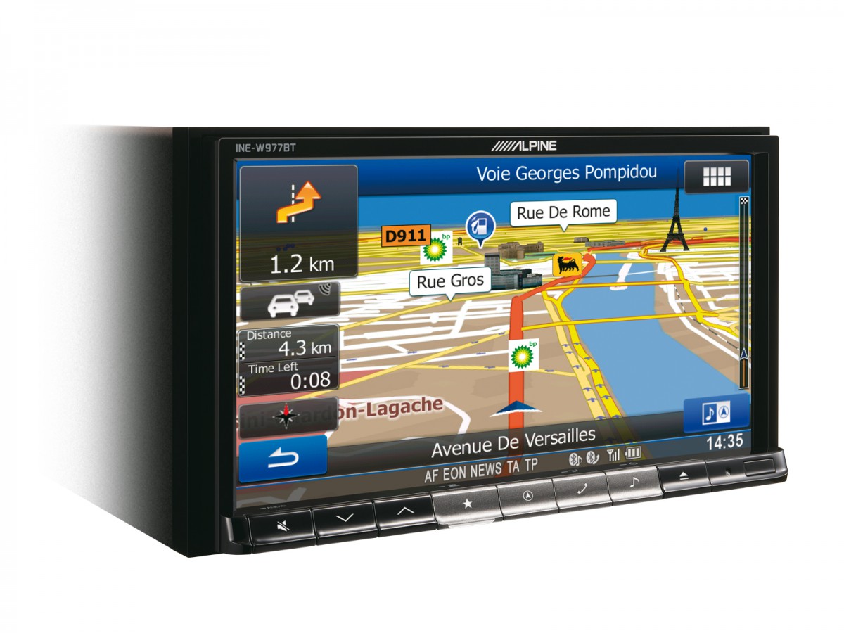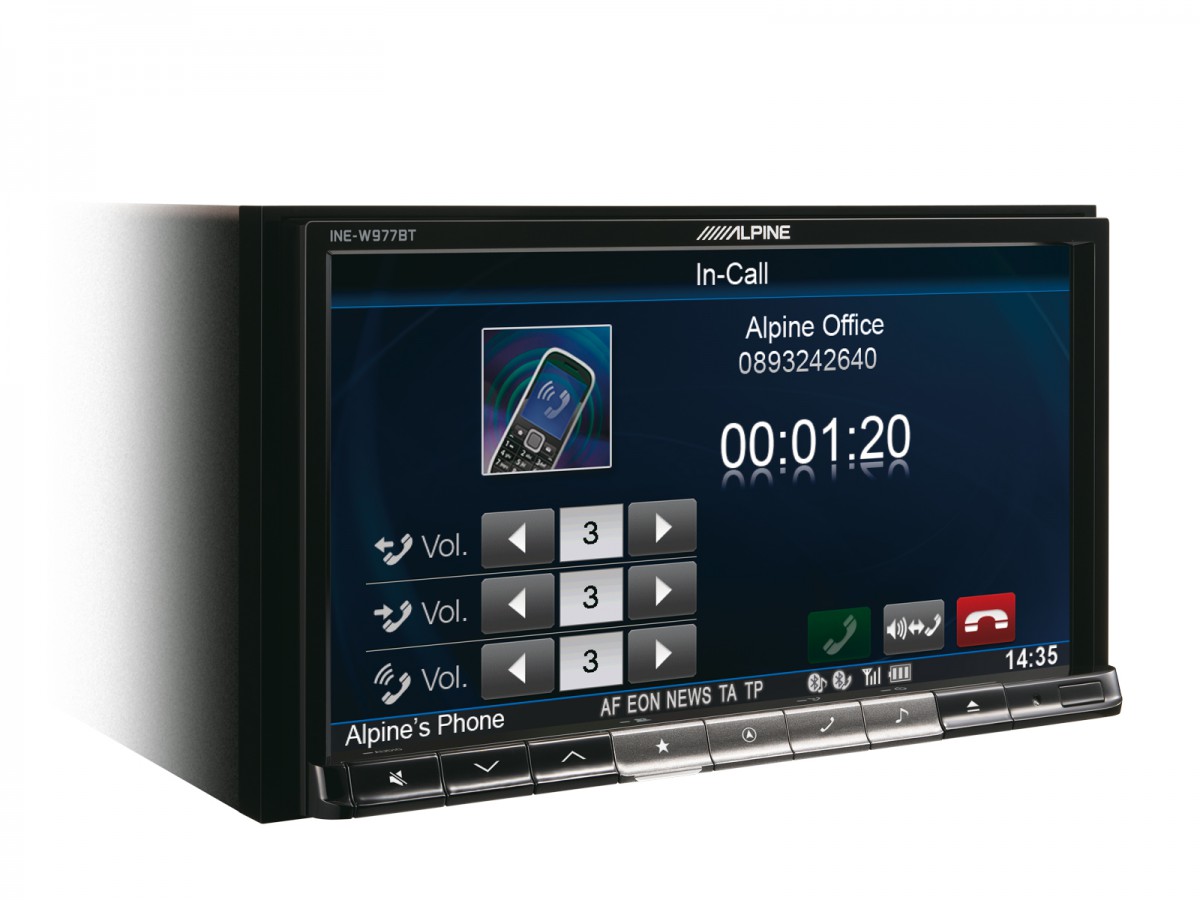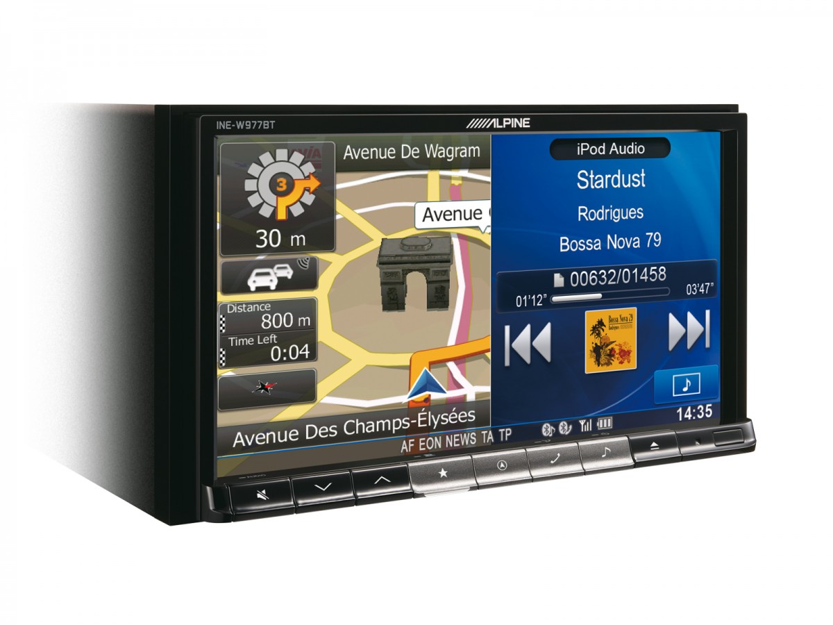 Напълно новата навигационна единица Alpine INE-W977BT предлага блестящ 7" WVGA дисплей, който може да бъде напълно отделен от устройството, за да се предотврати кражба, както и оптичен изход за свързване към звуковия процесор PXA-H800.