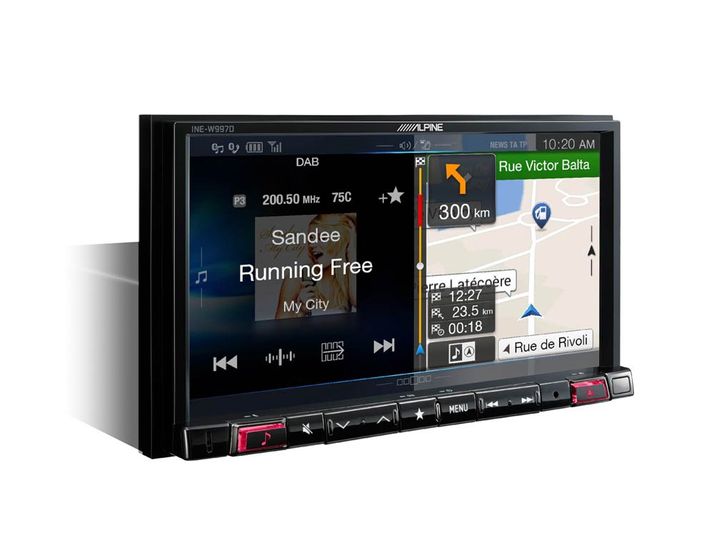 Navigační jednotka Alpine INE-W997D пренася много предимства от най-новия навигационен софтуер iGO Primo. Този ненадминат софтуер изчислява маршрута ултра бързо, така че не е нужно да чакате преди тръгване. Устройството е също така оборудвано с по-добра графика на картите и по-добър потребителски интерфейс, както и с по-добро приближаване и завъртане на картите. Освен това можете да получите десетки нови навигационни опции и функции, което прави кратките и дългите пътувания по-приятни.