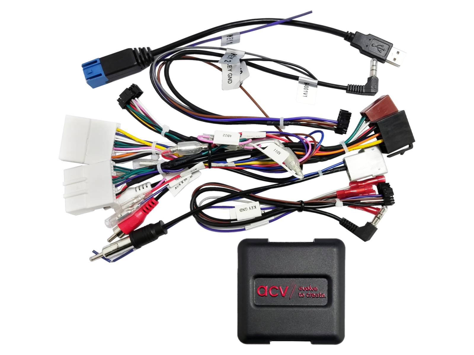 - Конектор: OEM AUX > RCA(m) червен/бял.