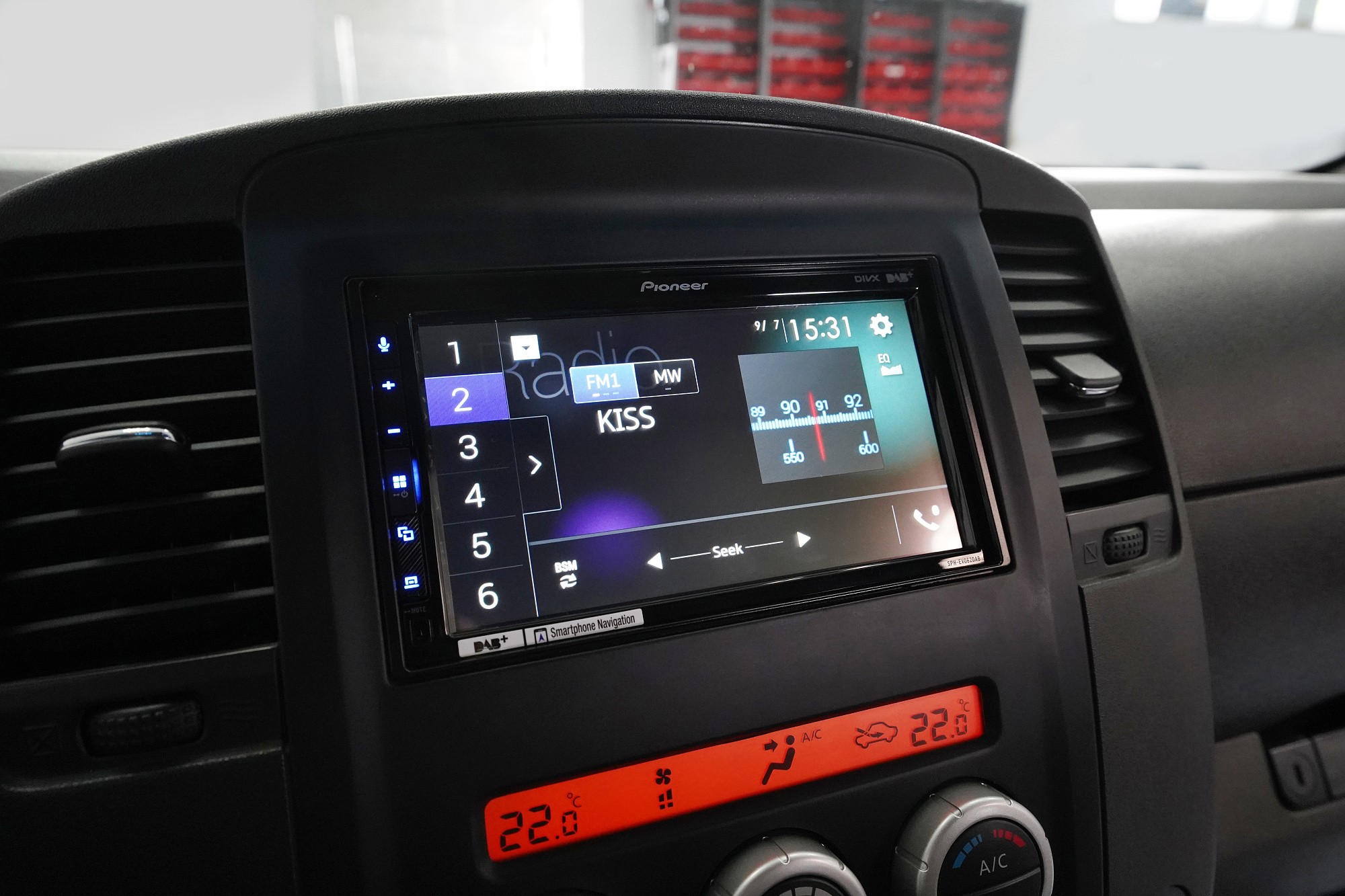Вид на инсталациятаOdhlučnění a instalace autorádia, reproduktorů a parkovací kamery