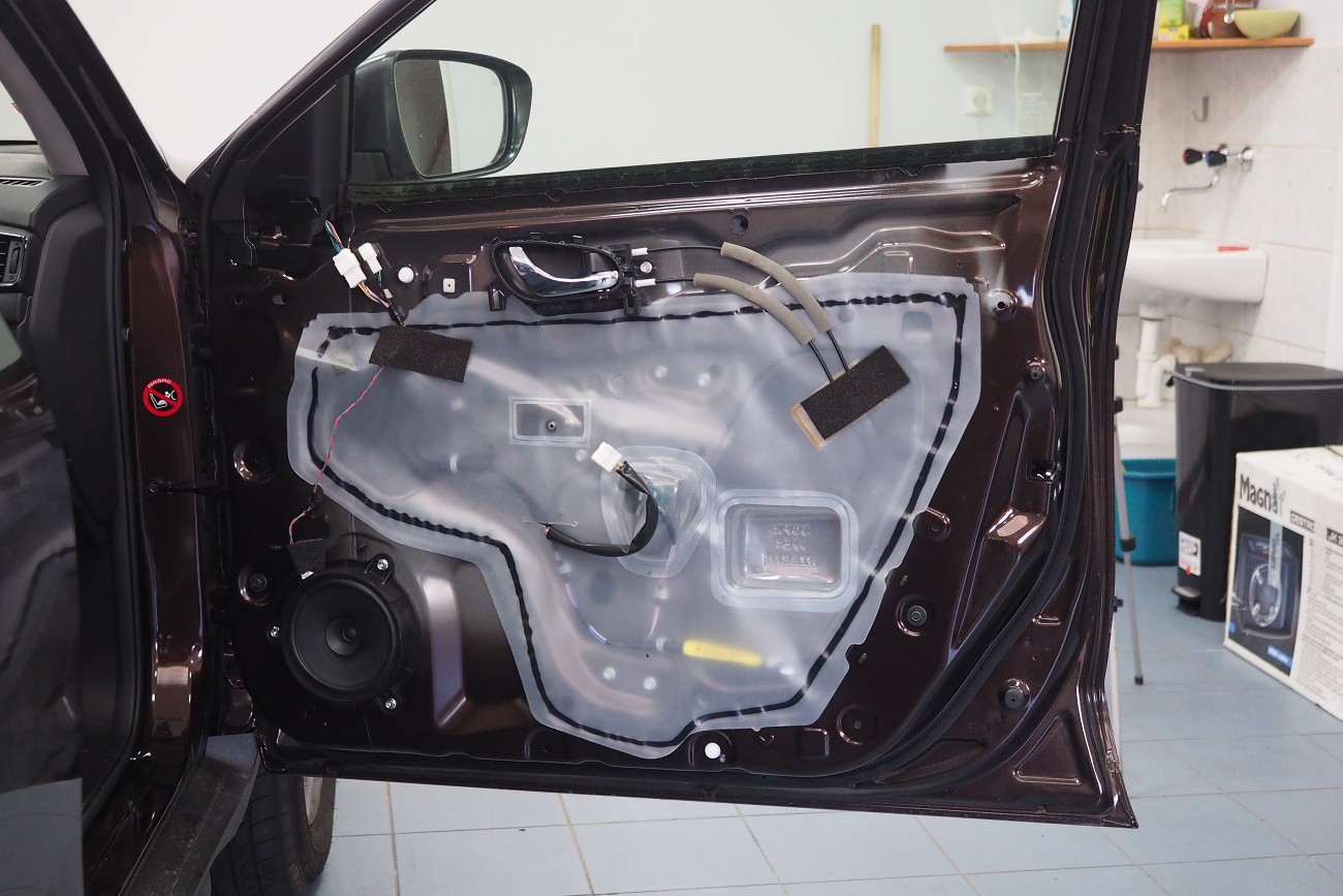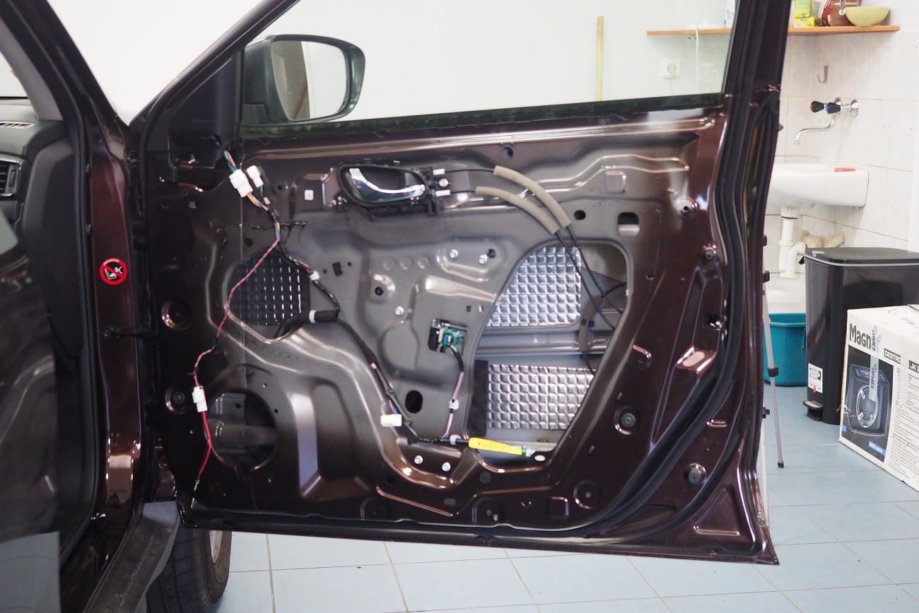 Смяна на говорителите в автомобил Nissan X-Trail от последно поколение. Заводските говорители в предните и задните врати заменихме с нашия изгоден комплект говорители на германския производител Gladen, които заедно с шумоизолацията на вратите са идеални като висококачествен ъпгрейд на заводската аудиосистема.