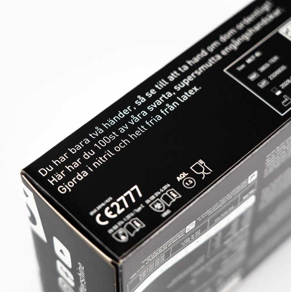 Tershine Nitril са издръжливи работни нитрилови ръкавици в черно, предлагани в размери M, L и XL. Те са идеални за защита на ръцете ви при тежки работни условия. Изработени от висококачествен нитрил, осигуряват надеждна защита срещу химикали и други вредни вещества. Укрепената им структура е устойчива на триене и разкъсване, като същевременно е мека и еластична, което гарантира висок комфорт при носене. Тези ръкавици са хипоалергенни и безопасни за кожата, без талк и латекс, което минимизира риска от алергии. Отговарят на европейския стандарт DIN EN 374, който гарантира защита срещу химикали и микроорганизми. Всяка опаковка съдържа 100 ръкавици, готови за максимална защита и удобство при работа.Основни характеристики