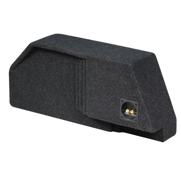 - Кутията е облечена в черен килим и е оборудвана с терминал за свързване на кабели.