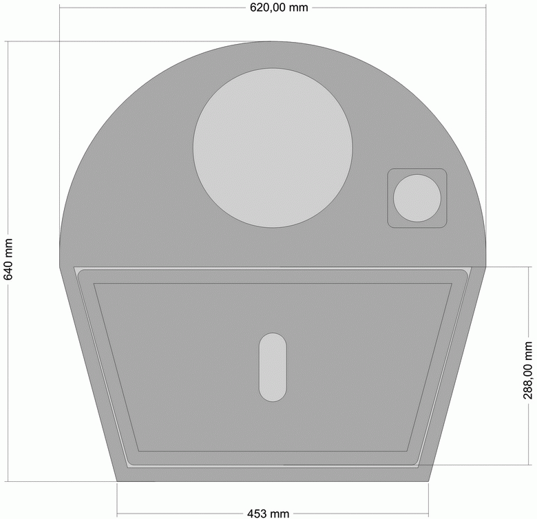 | Размер на отвора за субуферОтвор за съответната диаметрална категория субуфери. За 300 mm субуфер отворът обикновено е около 28,3 см. Монтажните диаметри на субуферите обикновено са стандартизирани, така че няма нужда от промени. | 25 cm (10\") |