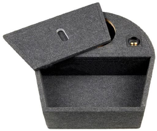 - Кутията е покрита със сиво килимово покритие и е оборудвана с терминал за свързване на кабели.