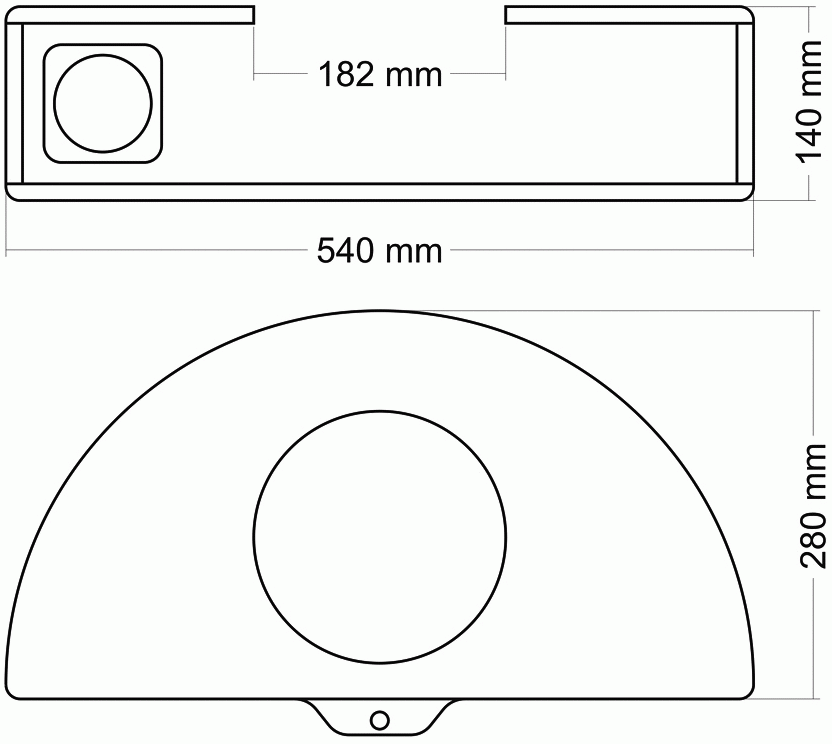 | Размер на отвора за субуферОтвор за съответната диаметрална категория субуфери. За 300 mm субуфер отворът обикновено е около 28,3 см. Монтажните диаметри на субуферите обикновено са стандартизирани, така че няма нужда от промени. | 20 cm (8\") |