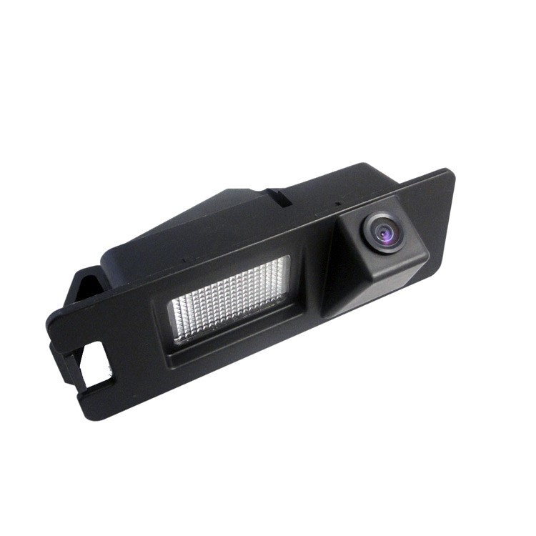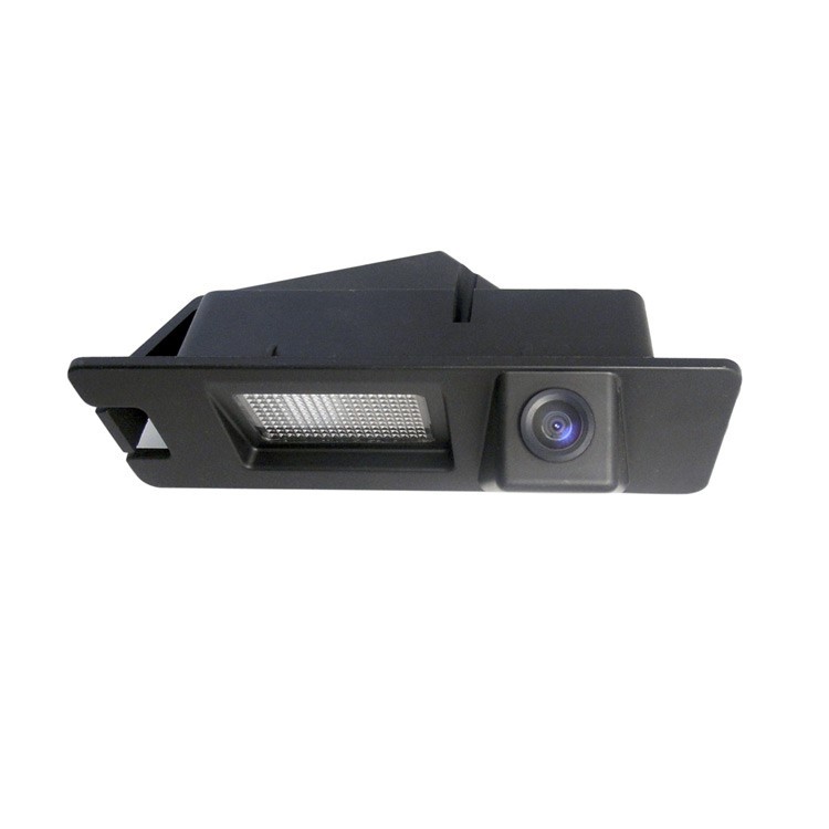 OEM цветна паркинг камера за монтаж на мястото на осветлението на задния регистрационен номер. Камерата включва място за поставяне на патрон с крушка от оригиналната лампа за регистрационния номер.