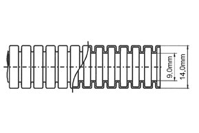 Ohebná hadice (husí krk) - ochranná trubice s podélným prořezem pro snadnou instalaci vodičů v automobilech, průmyslových zařízeních, řídících systémech a dalších elektrotechnických zařízeních. Vysoká pružnost a odolnost proti proražení a tlaku, odolnost proti působení chemických látek.- Vnitřní průměr trubice: 9,0 mm