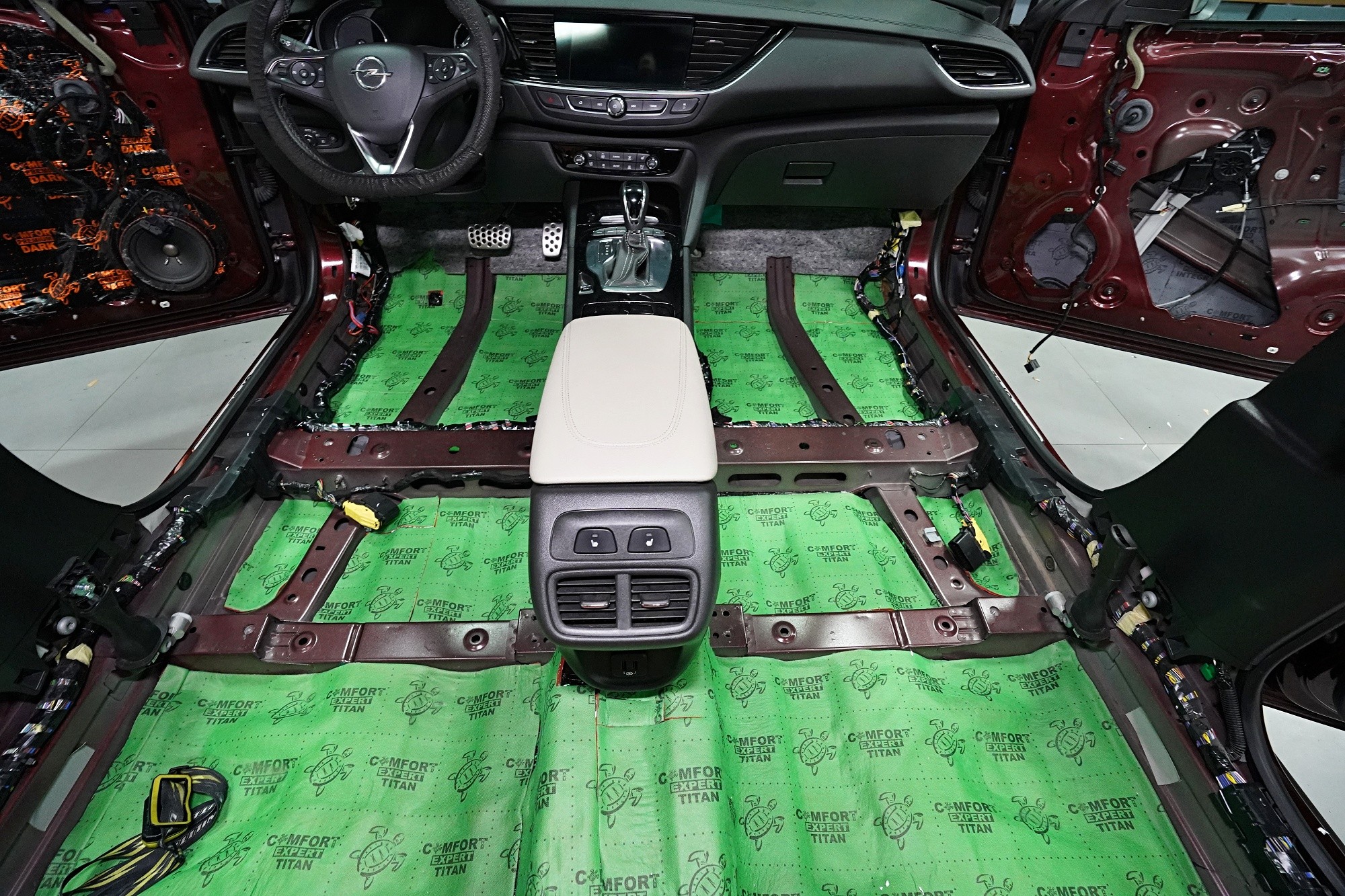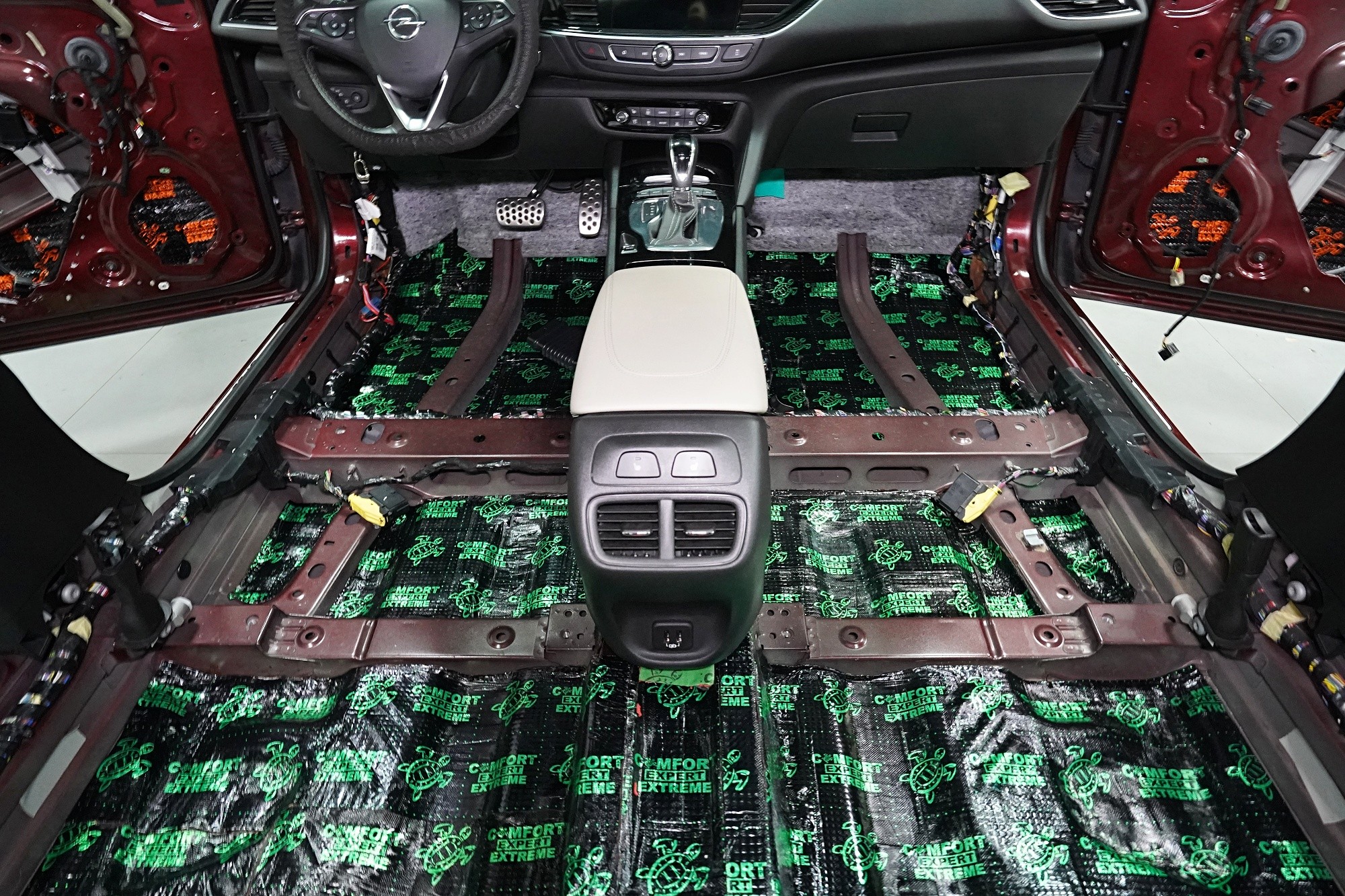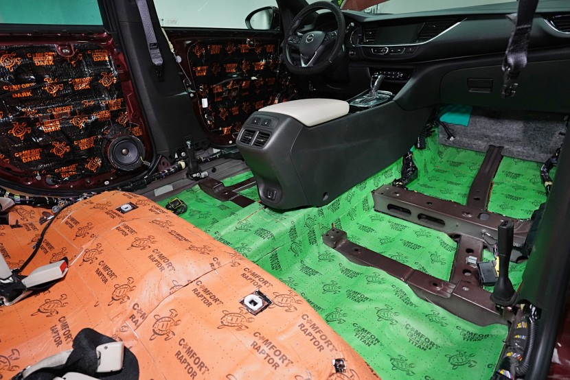 Обезшумяване на Opel Insignia с максимално възможна ефективност, включително демонтаж и обезшумяване на таблото. Изискването за допълнителна звукова изолация на този автомобил беше просто - обезшумяване без компромиси. Собственикът вероятно е имал основателни причини за това, защото Insignia от завода е много слабо обезшумена и освен това страдаше от нестандартни шумове в областта на таблото. Първо се заемахме с подробно обезшумяване именно на таблото, благодарение на което значително намалихме шума от двигателя. След това продължихме по стандартен начин, но с използване на най-ефективните материали на водещия руски производител Comfortmat. Конкретно избрахме нашия пакет обезшумяване Premium Plus, който индивидуално адаптирахме за максимална ефективност. Фокусирахме се на всички ключови зони на автомобила, а именно предни, задни и петата врата, пода, багажното отделение, предни и задни калници от вътрешната и външната страна, капака, торпедото и споменатото табло. Инсталацията бе извършена едновременно от четирима наши опитни техници, които изпълняват монтажа в рамките на 1 работен ден. Повече интересна информация за инсталацията ще намерите в нашия фоторепортаж.