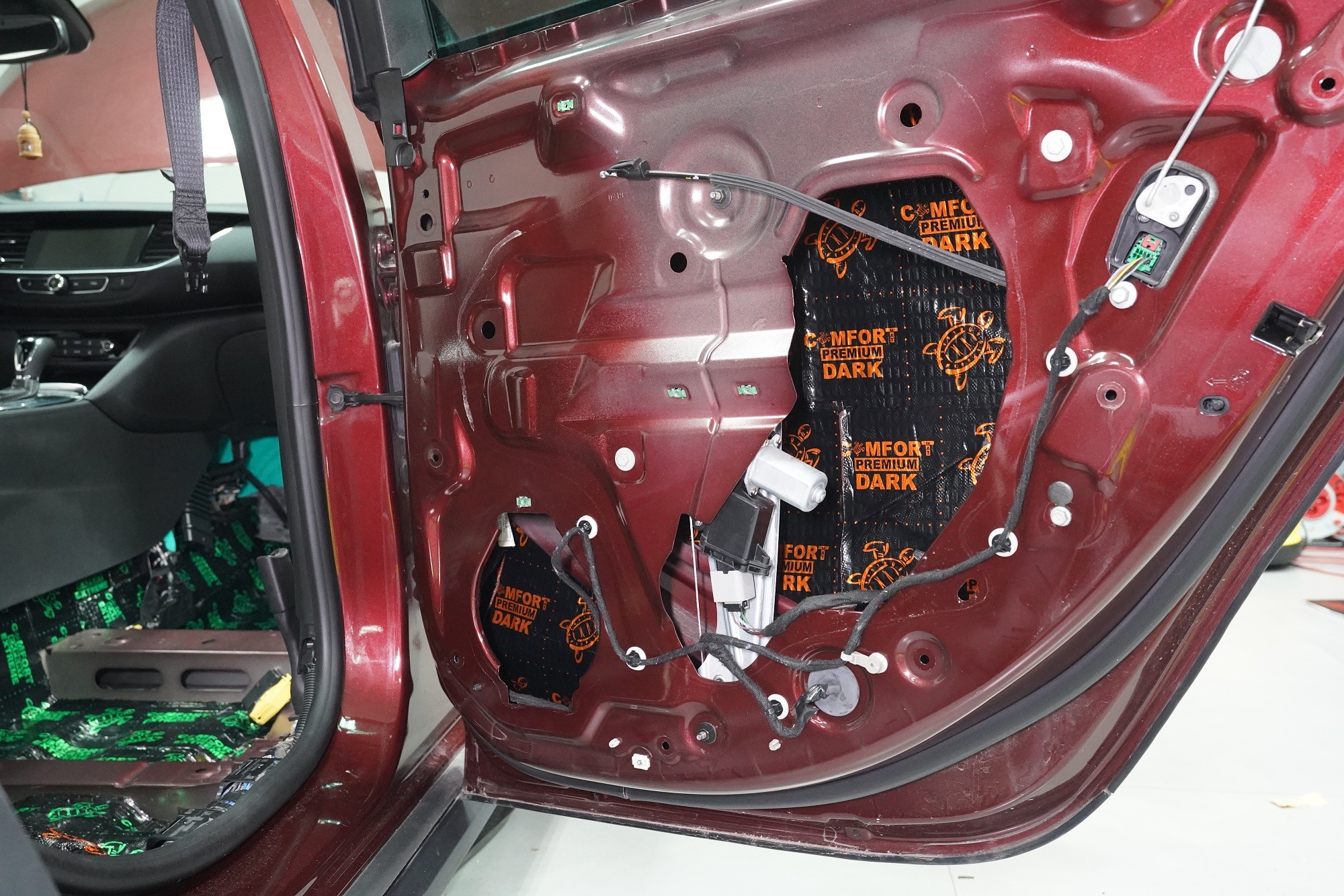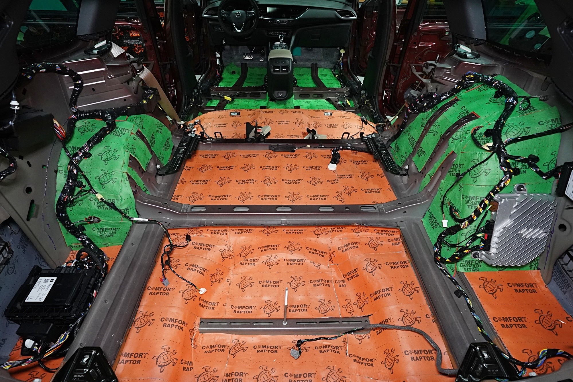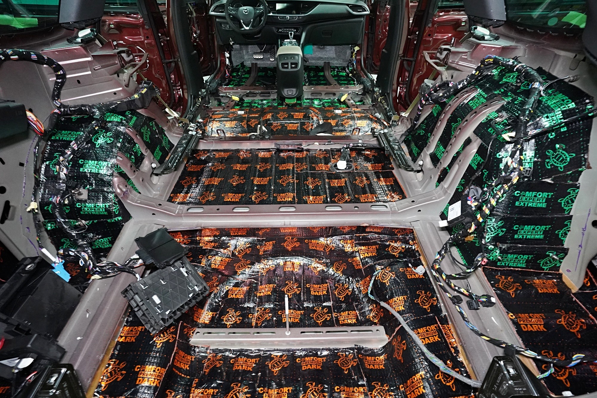 Обезшумяване на Opel Insignia с максимално възможна ефективност, включително демонтаж и обезшумяване на таблото. Изискването за допълнителна звукова изолация на този автомобил беше просто - обезшумяване без компромиси. Собственикът вероятно е имал основателни причини за това, защото Insignia от завода е много слабо обезшумена и освен това страдаше от нестандартни шумове в областта на таблото. Първо се заемахме с подробно обезшумяване именно на таблото, благодарение на което значително намалихме шума от двигателя. След това продължихме по стандартен начин, но с използване на най-ефективните материали на водещия руски производител Comfortmat. Конкретно избрахме нашия пакет обезшумяване Premium Plus, който индивидуално адаптирахме за максимална ефективност. Фокусирахме се на всички ключови зони на автомобила, а именно предни, задни и петата врата, пода, багажното отделение, предни и задни калници от вътрешната и външната страна, капака, торпедото и споменатото табло. Инсталацията бе извършена едновременно от четирима наши опитни техници, които изпълняват монтажа в рамките на 1 работен ден. Повече интересна информация за инсталацията ще намерите в нашия фоторепортаж.