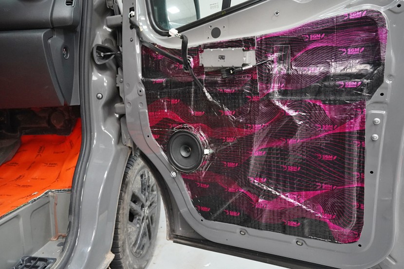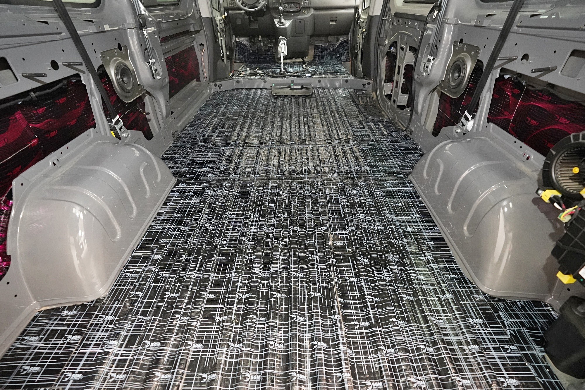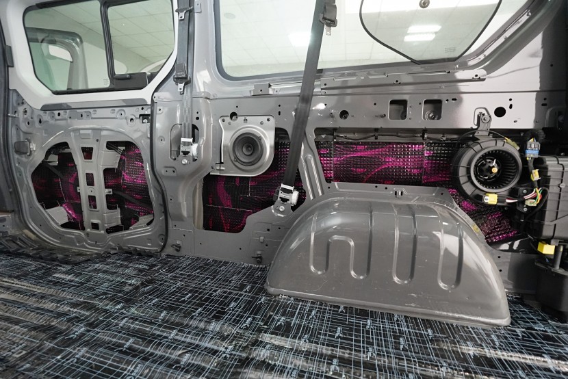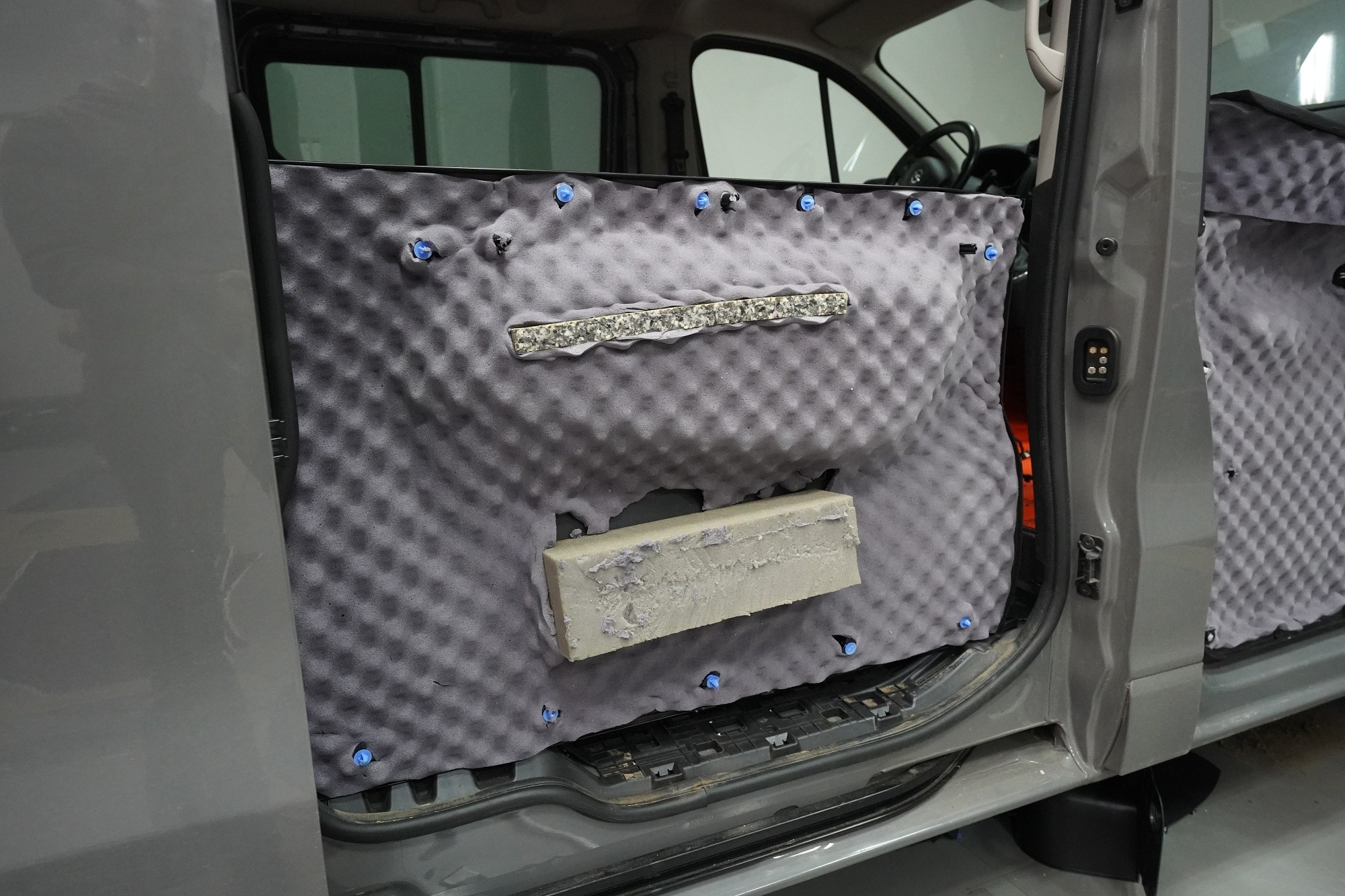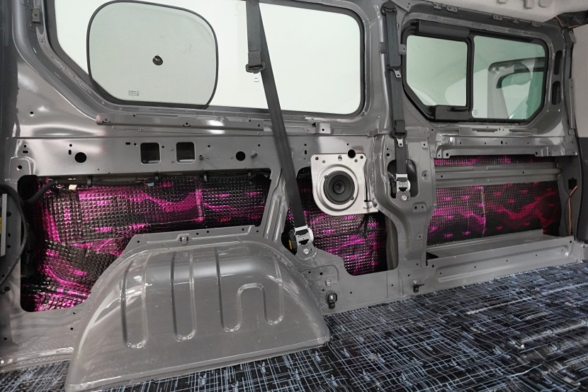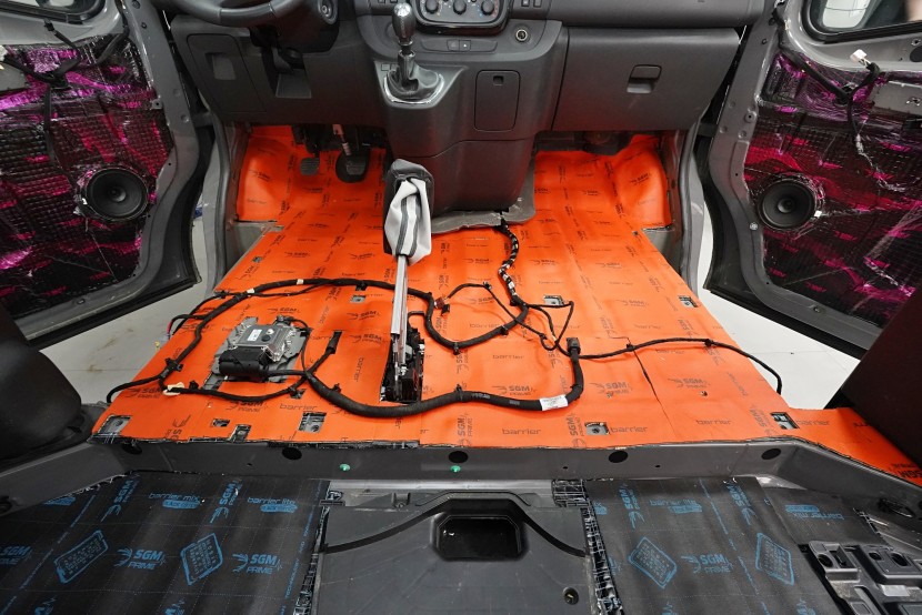 Пълна шумоизолация на автомобила Opel Vivaro. При този товарен автомобил важи същото като при подобни превозни средства от тази категория като Mercedes-Benz Viano или VW T6. Заводската звукоизолация практически не съществува и Vivaro също страда от висок шум в купето. Потребителите най-често се оплакват от шума от пътя, двигателя, калниците на предните и задните колела и поради конструкцията си и от изразен аеродинамичен шум. За най-добър резултат избрахме пълна шумоизолация на всички зони на автомобила и приложихме изключително материали SGM от най-високата серия Prime. Конкретно се съсредоточихме върху предните, плъзгащите и петата врата, пода, покрива, страничните панели, предните и задните калници, таблото и капака. Разшумяваме, разбира се, и повечето пластмасови детайли в интериора, за да предотвратим скърцане и скърцане на пластмасите. Всички избрани материали имат и топлоизолационна функция и този автомобил вече е защитен и от топлинни загуби. По шумоизолацията работят едновременно четирима наши техници, които успяват монтажа в рамките на 1 работен ден.