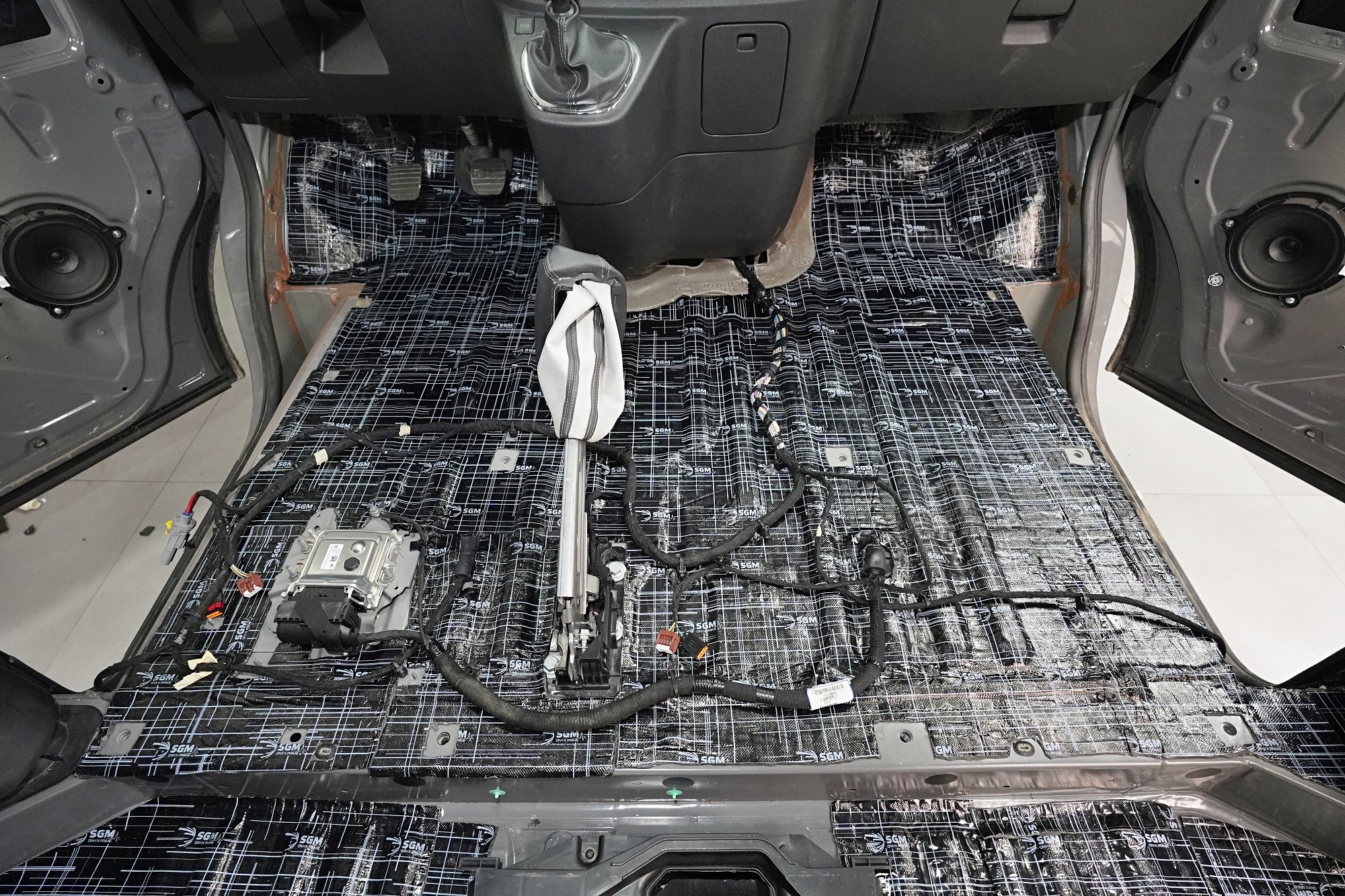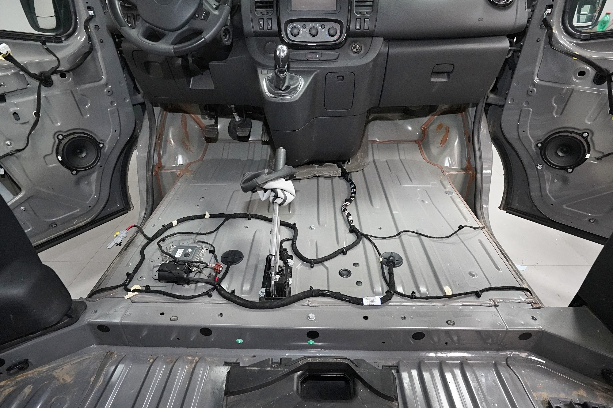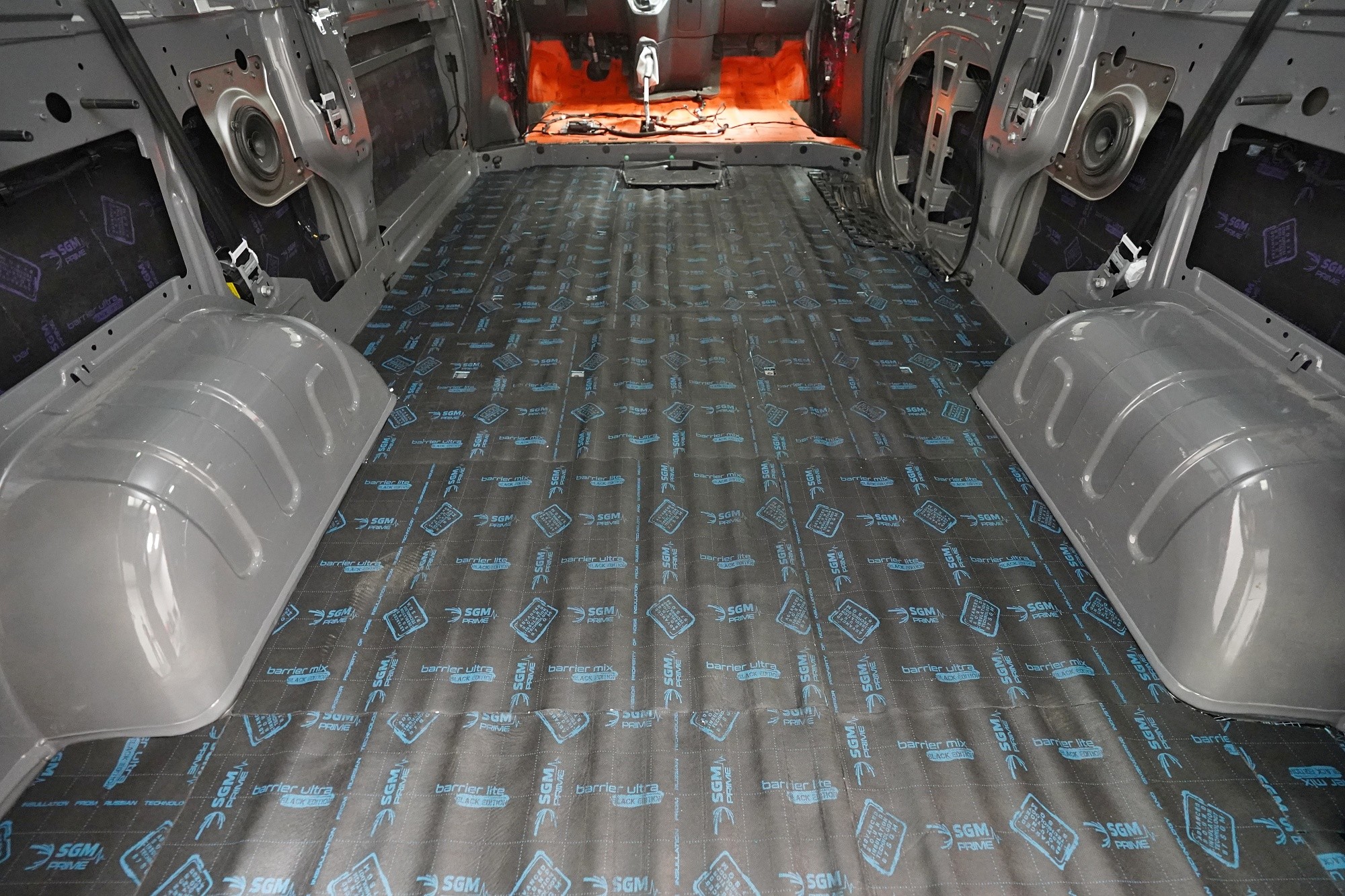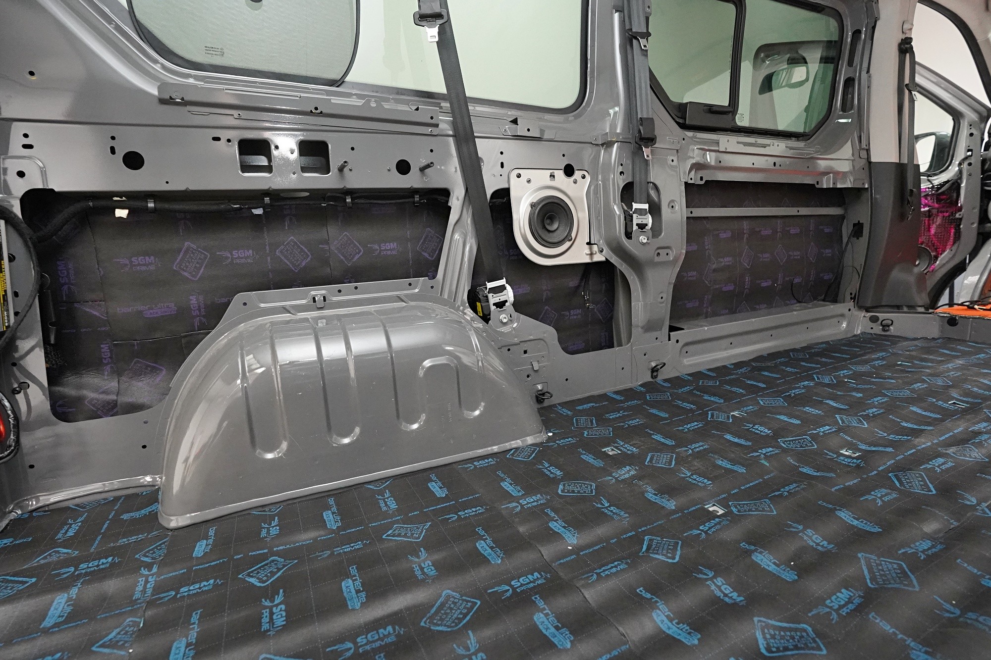 Пълна шумоизолация на автомобила Opel Vivaro. При този товарен автомобил важи същото като при подобни превозни средства от тази категория като Mercedes-Benz Viano или VW T6. Заводската звукоизолация практически не съществува и Vivaro също страда от висок шум в купето. Потребителите най-често се оплакват от шума от пътя, двигателя, калниците на предните и задните колела и поради конструкцията си и от изразен аеродинамичен шум. За най-добър резултат избрахме пълна шумоизолация на всички зони на автомобила и приложихме изключително материали SGM от най-високата серия Prime. Конкретно се съсредоточихме върху предните, плъзгащите и петата врата, пода, покрива, страничните панели, предните и задните калници, таблото и капака. Разшумяваме, разбира се, и повечето пластмасови детайли в интериора, за да предотвратим скърцане и скърцане на пластмасите. Всички избрани материали имат и топлоизолационна функция и този автомобил вече е защитен и от топлинни загуби. По шумоизолацията работят едновременно четирима наши техници, които успяват монтажа в рамките на 1 работен ден.