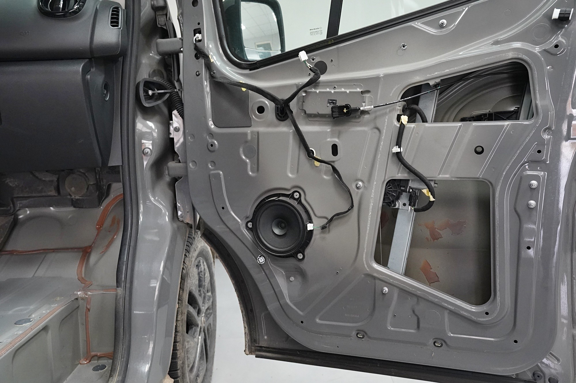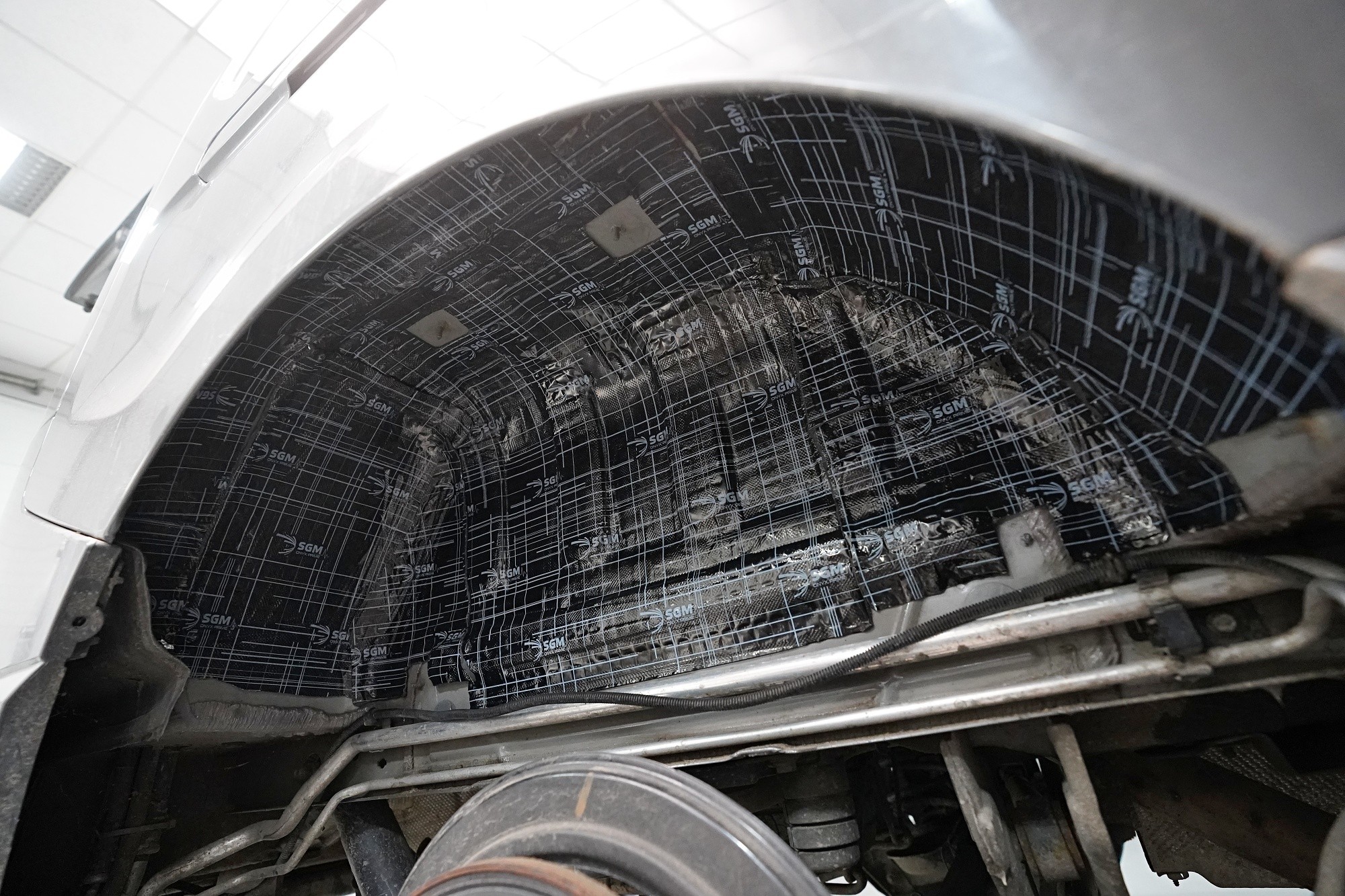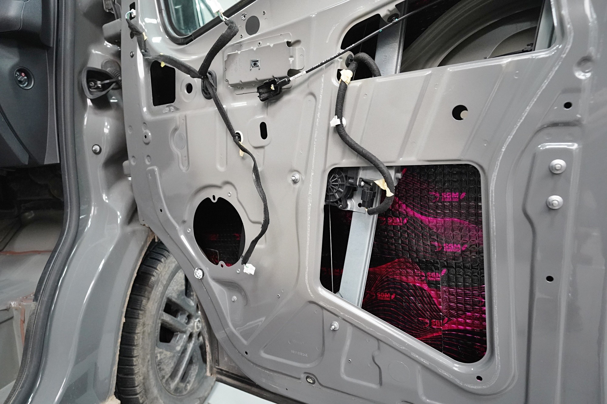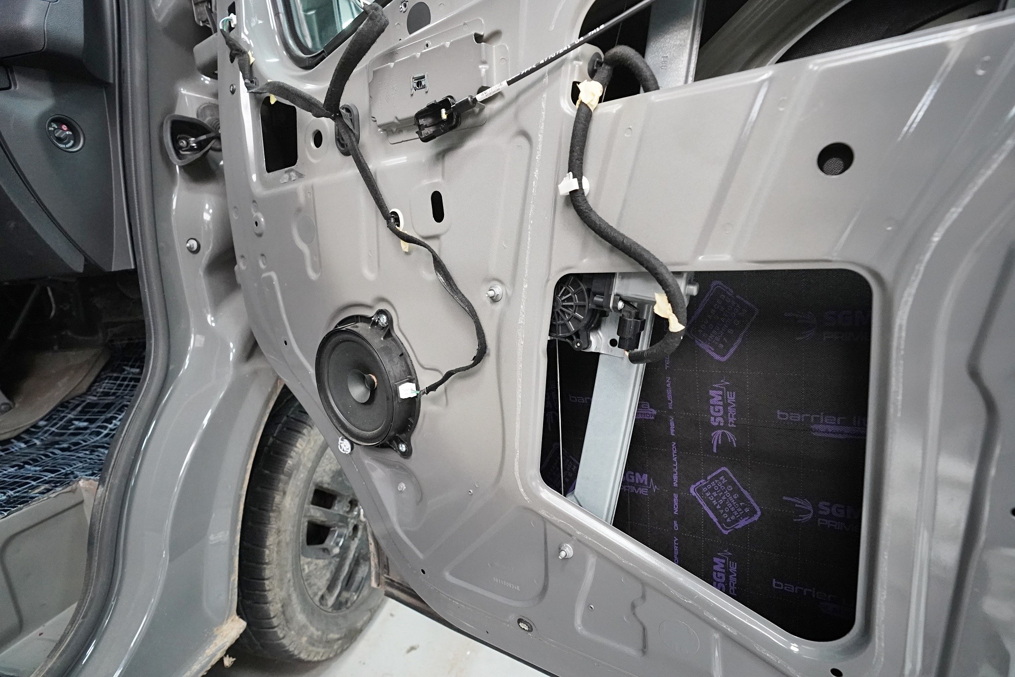 Пълна шумоизолация на автомобила Opel Vivaro. При този товарен автомобил важи същото като при подобни превозни средства от тази категория като Mercedes-Benz Viano или VW T6. Заводската звукоизолация практически не съществува и Vivaro също страда от висок шум в купето. Потребителите най-често се оплакват от шума от пътя, двигателя, калниците на предните и задните колела и поради конструкцията си и от изразен аеродинамичен шум. За най-добър резултат избрахме пълна шумоизолация на всички зони на автомобила и приложихме изключително материали SGM от най-високата серия Prime. Конкретно се съсредоточихме върху предните, плъзгащите и петата врата, пода, покрива, страничните панели, предните и задните калници, таблото и капака. Разшумяваме, разбира се, и повечето пластмасови детайли в интериора, за да предотвратим скърцане и скърцане на пластмасите. Всички избрани материали имат и топлоизолационна функция и този автомобил вече е защитен и от топлинни загуби. По шумоизолацията работят едновременно четирима наши техници, които успяват монтажа в рамките на 1 работен ден.