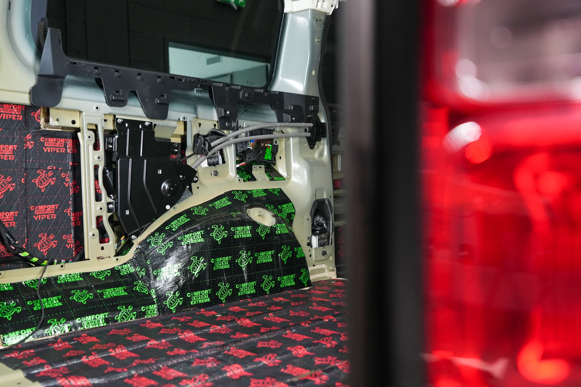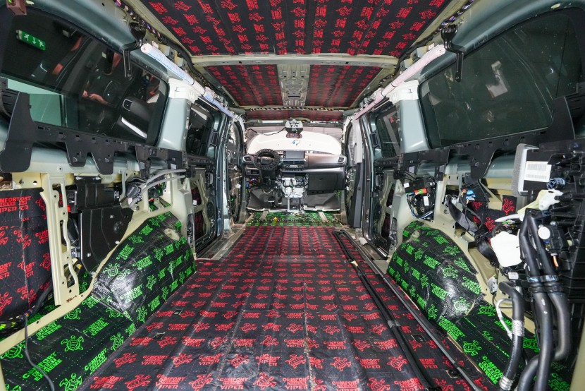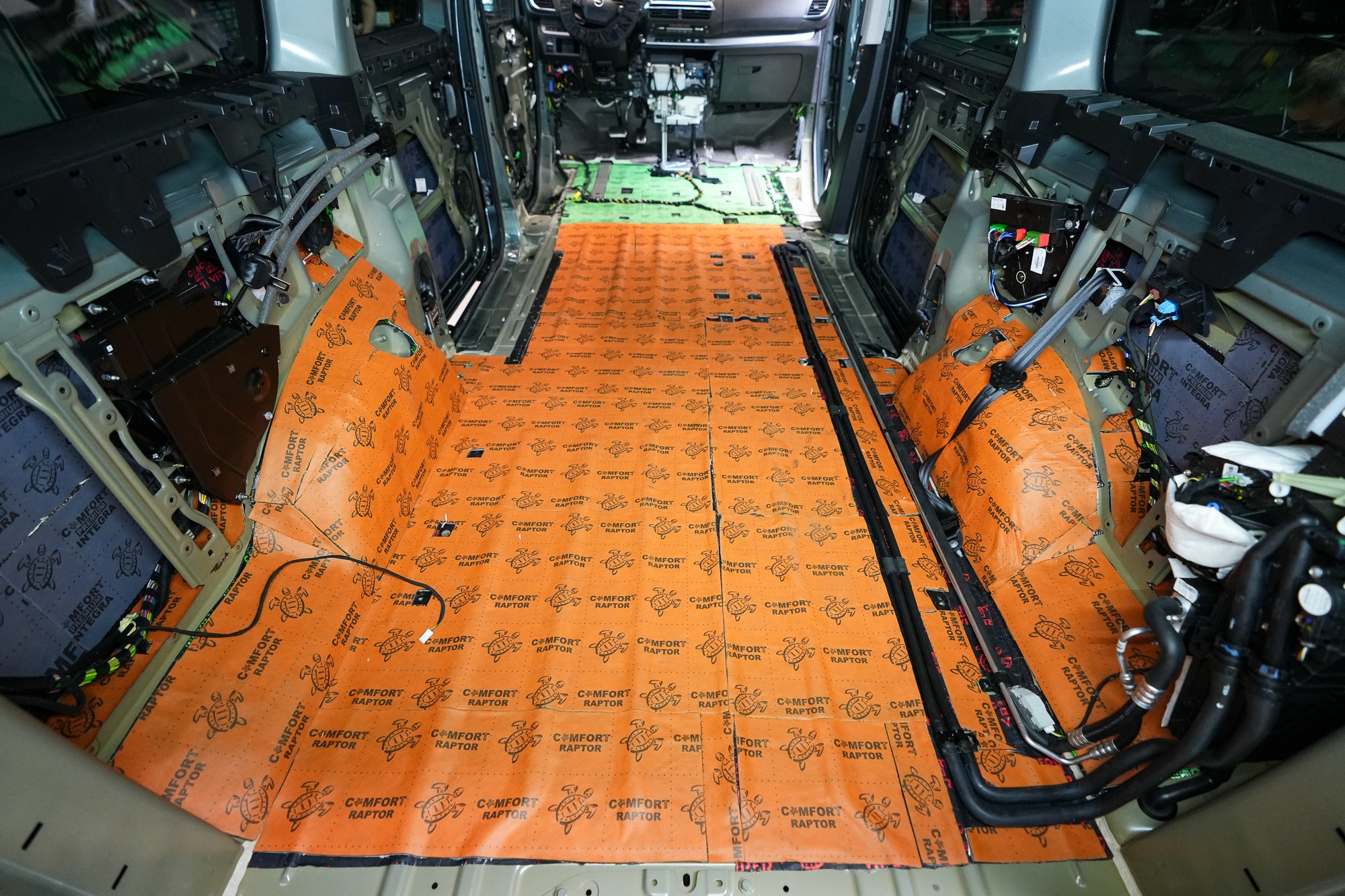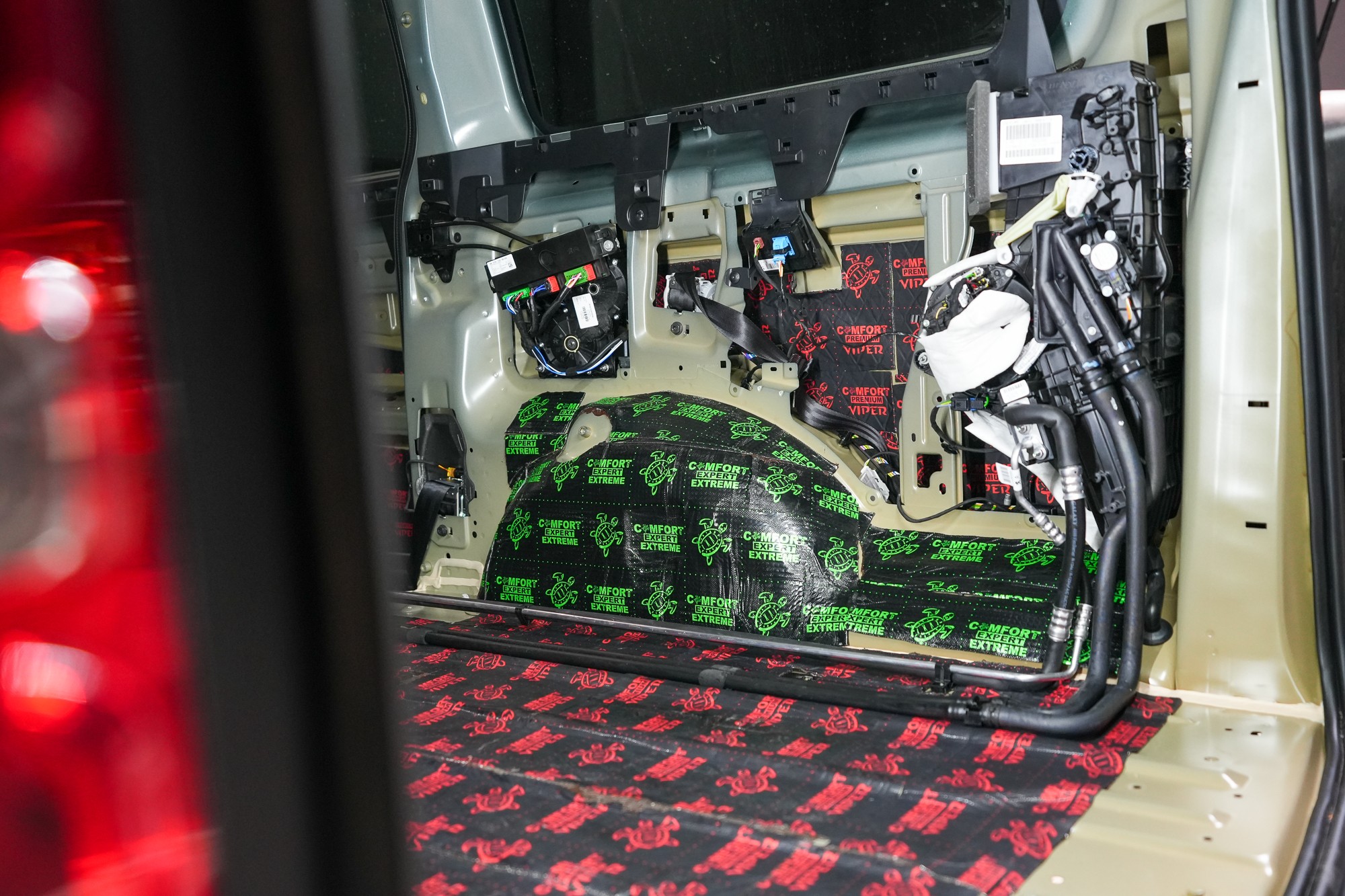 Нашата цел беше да превърнем шумния интериор на Zafira в комфортна среда, в която пътниците да се наслаждават на тишина и спокойствие. Това означаваше щателно обезшумяване на всички проблемни зони на купето. Използвахме за това премиум шумоизолационни материали Comfortmat, които нанесохме поне в два слоя на всички ключови части – от предните, плъзгащите и задните врати, през пода, страничните панели, калниците, таблото до предния капак. Не забравихме и пластмасовите детайли в интериора, които също предават шум.