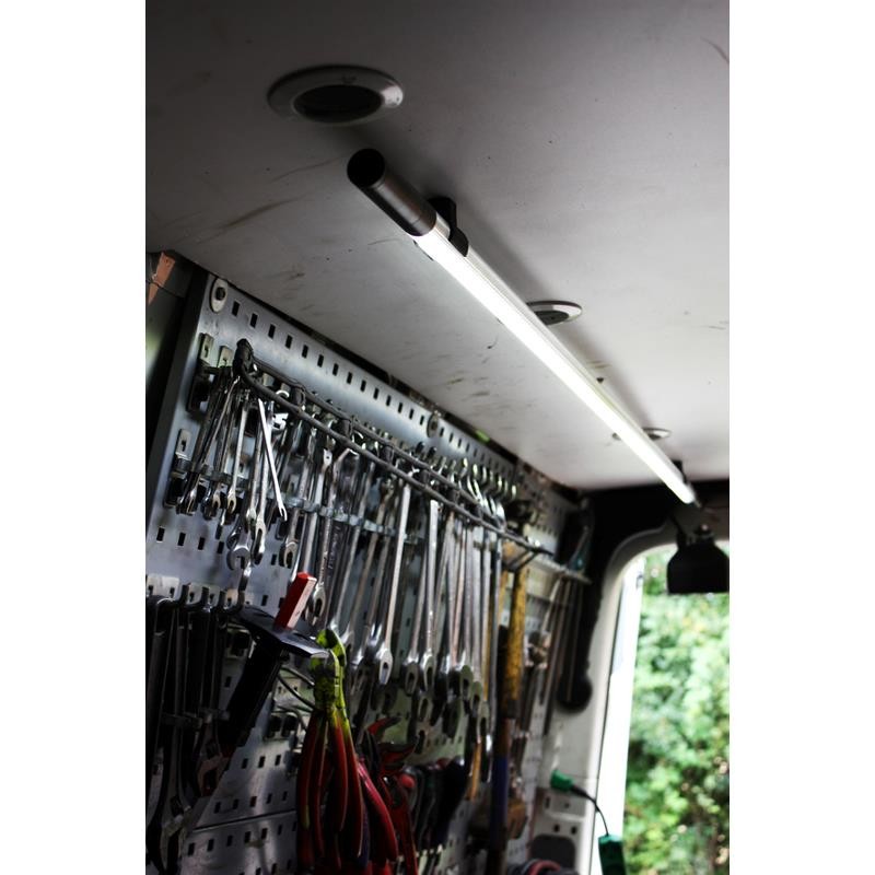 Scangrip Line Light 1 концентрира светлината в лъчов ъгъл 75° и осигурява изключително ярко и силно осветяване на цялата работна зона. Почти двойно по-голяма осветеност в сравнение с традиционните 36W флуоресцентни лампи. Конструкцията е тънка и компактна (само 25 mm в диаметър). Тъй като Scangrip Line Light 1 е нисковолтова (24V DC) система, можете лесно да извършите инсталацията сами. Всички основни монтажни елементи се доставят заедно с всеки комплект заедно със захранващия блок и кабела. Scangrip Line Light 1 е устойчива на удари и вода (IP67). Така издържа на влажна и замърсена среда, например в работилница. Техническият живот на LED е поне 100 000 часа. Scangrip Line Light 1 се състои от една LED тръба с дължина 1630 mm, включително 20 W захранващ блок, кабел и основно монтажно крепление.