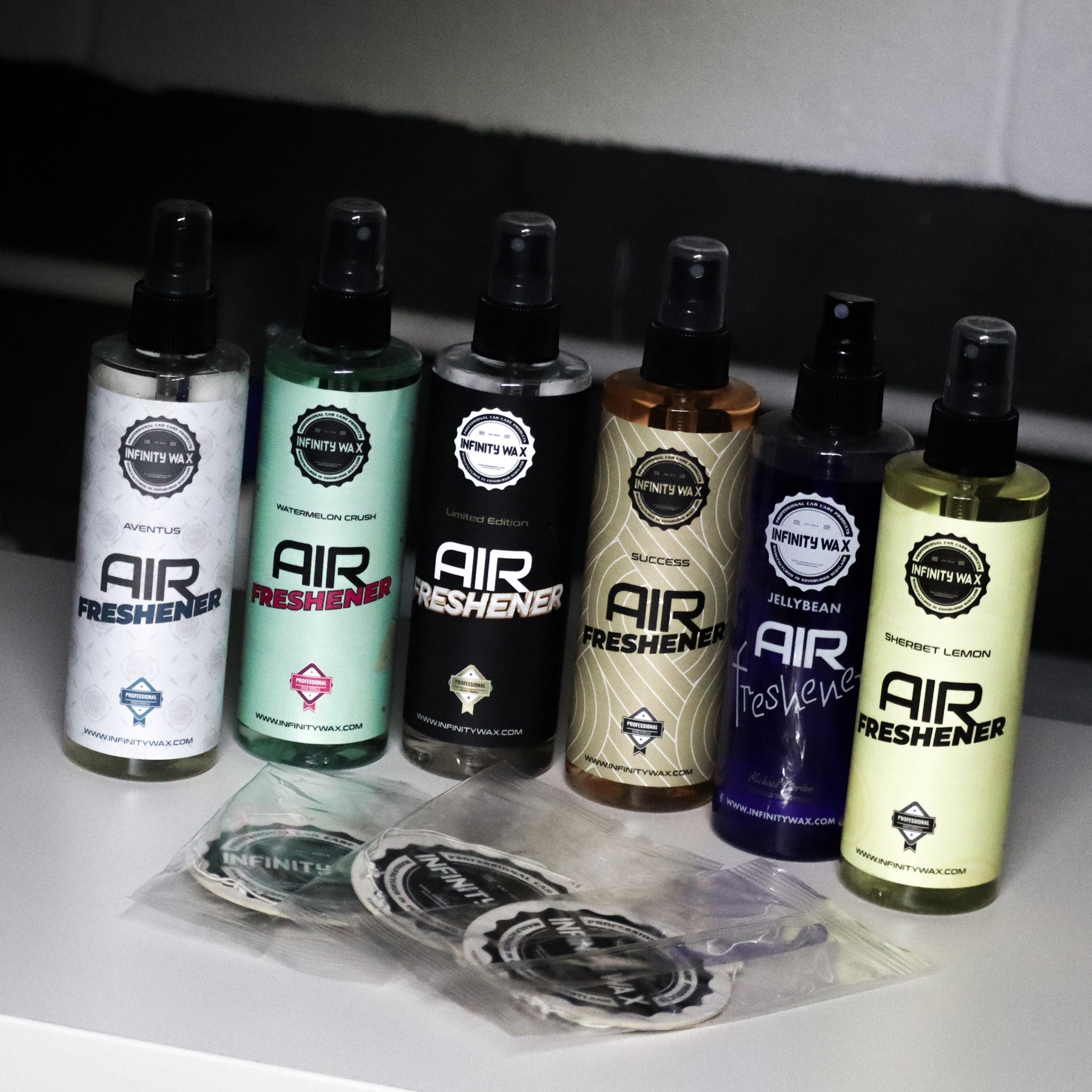 Techni osvezhiteli za vazduh v sprey sa formulirani, za da podobryat projekciyata na aromata, izdrzhimostta varhu tekstil i da sa bezopasni za vsichki poverhnosti v interiora. Aromatite Infinity Wax Air Freshener sa proizvodeni ot tehnicheska smes izopropil, fixativi, emulgatori i malko koli4estvo destilirana voda. Tova im pozvolyava da sa izklyuchitelno silni, a susto da ostanat chisti i bezopasni za izpolzvane v zatvoreni prostranstva kato vashiya avtomobil. Ne sudurzhat etanol, zhivotinski produkti ili enzimi. Te sa aromati, koyto v avtomobila vi izdyrzhat sedmitsa i poveche. Techni osvezhiteli ne samo otgovaryat na tezi kriterii, no i predlagat otlichen stoinost s do 367 vpryskvania na bubochka. Osvezhiteli Infinity Wax mozhe da se izpolzvat po veecheto, no sa nay-efektivni pri izpolzvane varhu chisti tък ani ili sled dълboko pochistvane na interiora. Za nay-dobri rezultati napryskaite malko varhu kilimcheta na vashiya avtomobil, varhu oblojenieto na tavana ili bezpechnite kolani.Osnovni harakteristiki