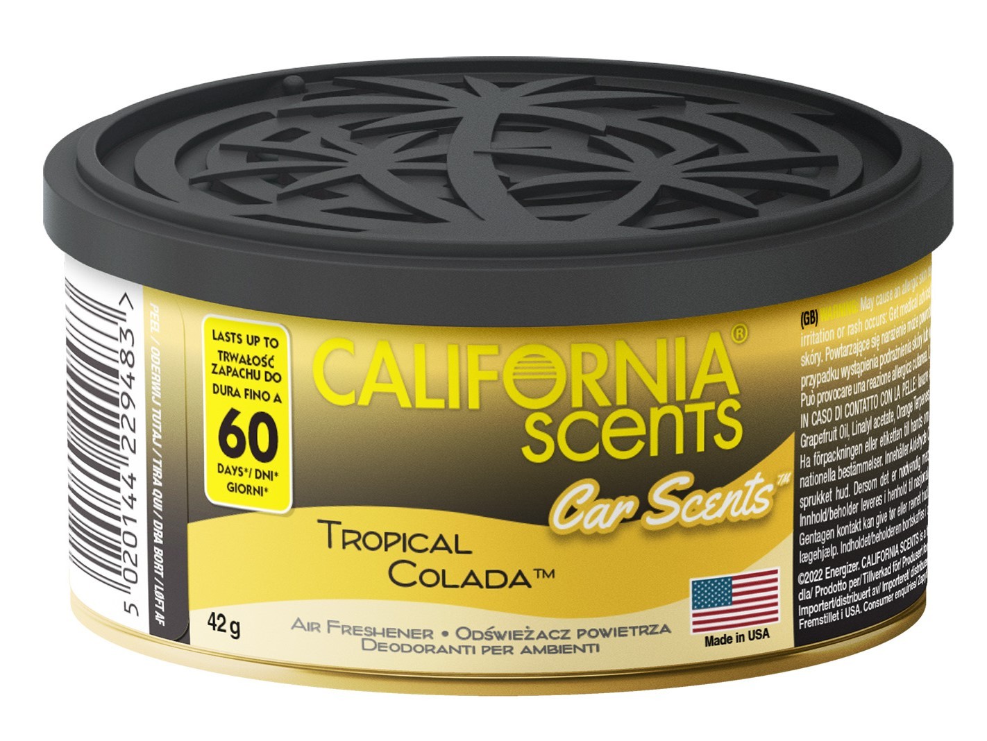 California Scents Tropical Colada ще ви пренесе директно на слънчев плаж с коктейл с кокос в ръка. Тази сладка и сочна комбинация от тропически плодове, кокос и ананас създава освежаващ аромат, който придава усещане за летна ваканция по всяко време и навсякъде. Отличен избор за тези, които обичат екзотични и изразителни аромати.