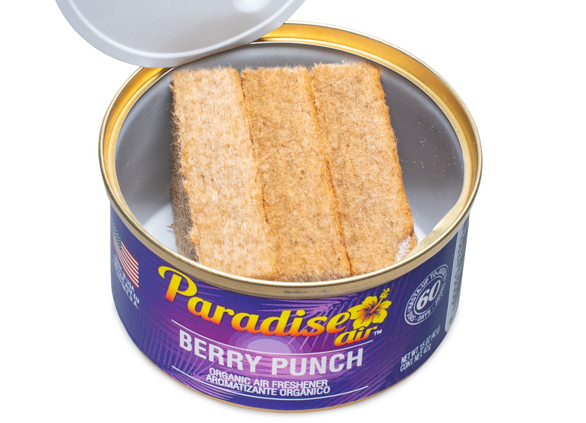 Ароматът Berry Punch от серията Paradise Air Organic носи сочна комбинация от горски плодове, която веднага освежава всяко пространство. Този природен освежител за въздух е произведен от органични материали, напоени с ароматни масла, и осигурява дълготрайна свежест без химия.