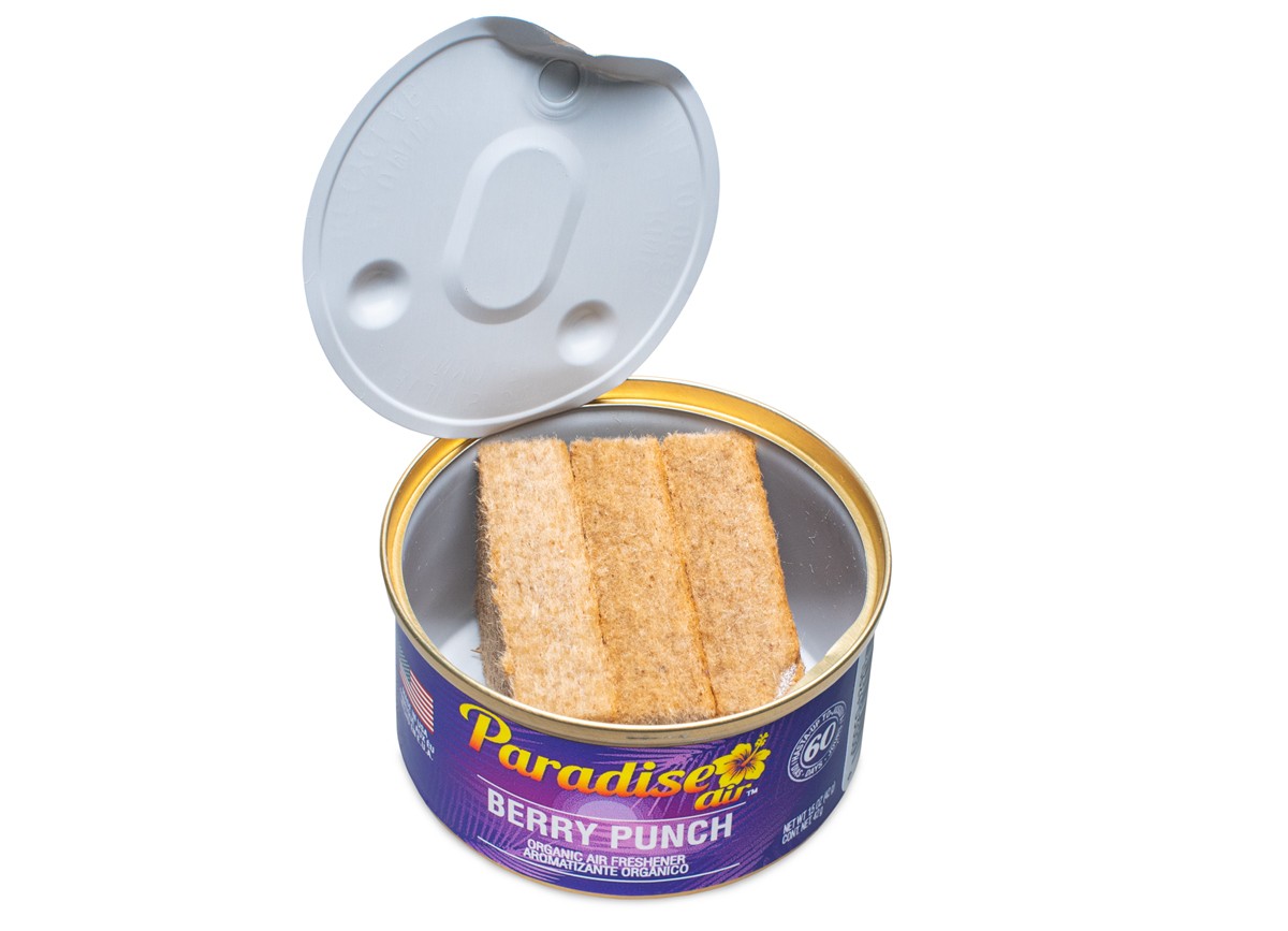 - Всяка метална кутийка аромат Paradise Air Organic съдържа три блока пресован лен, напоен с парфюм.