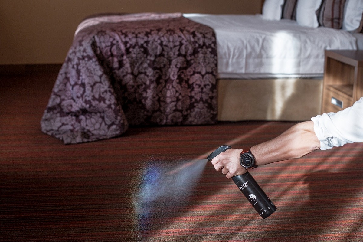 - В зависимост от размера на помещението или интериора на колата напръскайте 6 до 7 пъти на няколко различни места.