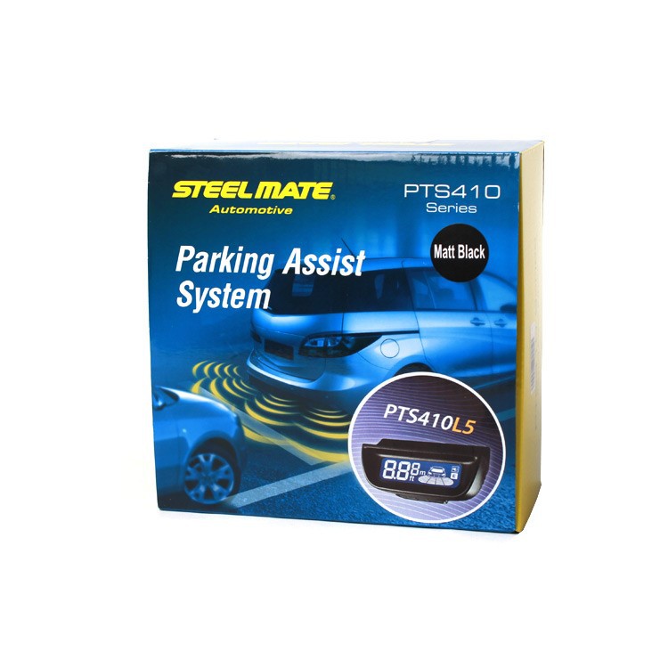 Паркинг асистент Steelmate с 4 сензора, предназначен за инсталиране в задната броня на автомобила, допълнен с LCD дисплей L5 с цифрови индикации за удобна визуална сигнализация на разстоянието до препятствието. Електронният блок позволява настройка на интелигентна обучителна функция, чувствителност в два нива и Antihook (изместване на засичането с 20 см).