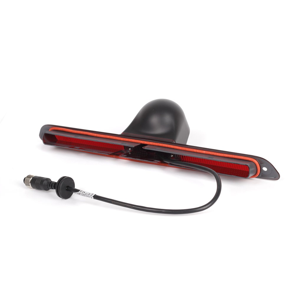 OEM паркинг камера, интегрирана в централното стоп-светлина, монтирано над задните двойни врати за фургони Mercedes-Benz и VW.