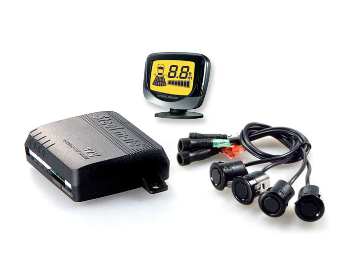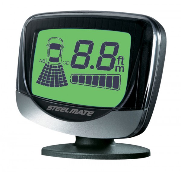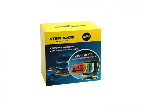 Парктроник STEELMATE се 4 сензора и 5-цветен LCD дисплей T1 с акустична и гласова сигнализация предназначен за монтаж в задната броня на автомобила