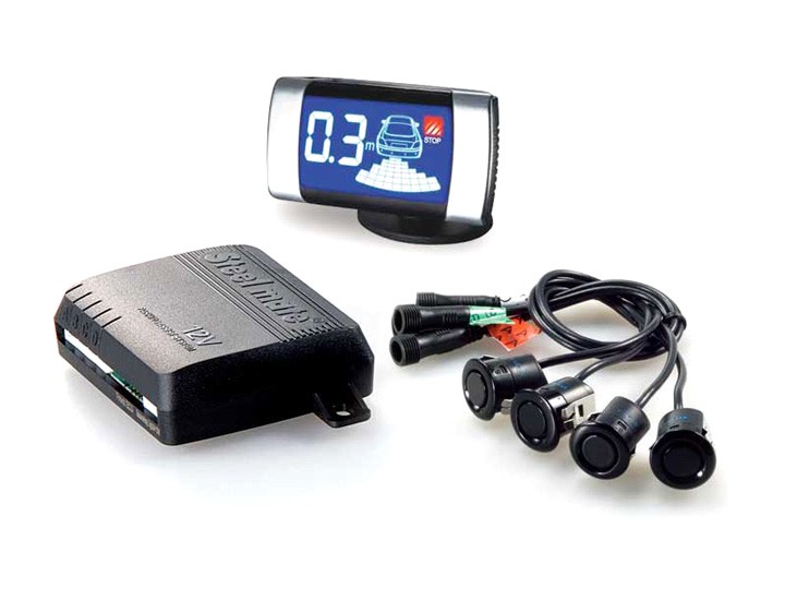 Parkovací asistent STEELMATE se 4 snímači a LCD displejem V5 s akustickou a hlasovou signalizací určený pro instalaci do zadníhonárazníku vozidla.