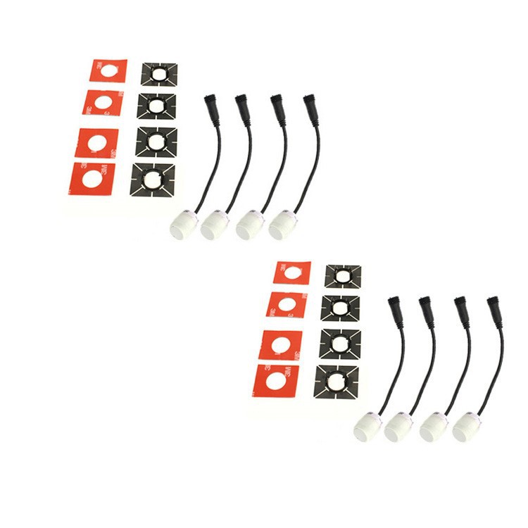 Парктроник Steelmate с 8 вградени бели сензора 16 mm, само с един контролен блок, за монтаж в предната и задната броня на автомобила, допълнен с LCD дисплей V7 с числов индикатор и графична индикация, монтаж на дисплея на предното стъкло. Контролният блок позволява настройка на интелигентна обучаваща функция, чувствителност в две нива и изместване на засичането с 20 cm.