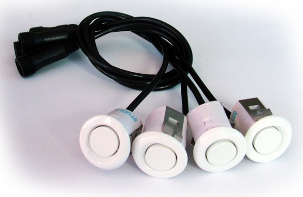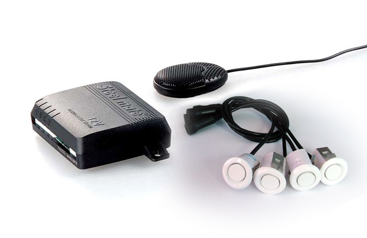 Парктроник STEELMATE с 4 бели сензора и звукова сигнализация, предназначен за монтаж в задната броня на автомобила. Системата е допълнена с функцията Antihook (игнориране на теглича на автомобила), автоматична идентификация на дефектен сензор и възможност за добавяне на LED дисплей. Комплектът съдържа 4 бр. парктроник сензора, управляваща единица, зумер и кабелировка. Захранващо напрежение 12V.