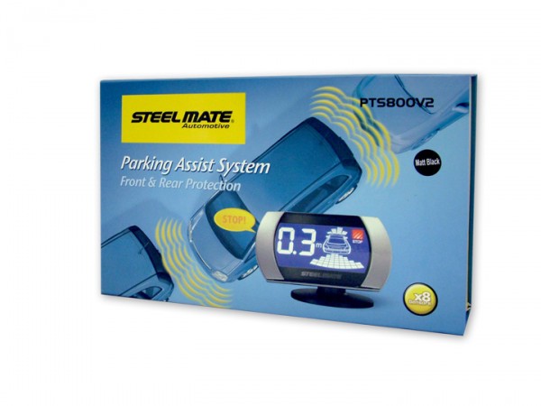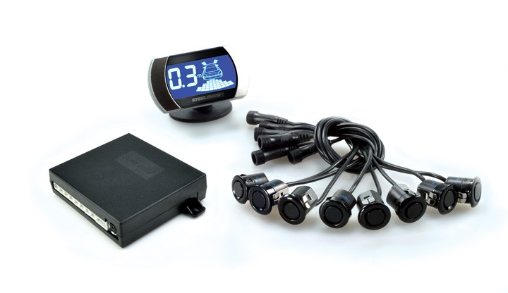 Осемсензорен парктроник STEELMATE с LCD дисплей V2 с акустична, визуална и гласова сигнализация. Предназначен за монтаж в предната и задната броня на автомобила.