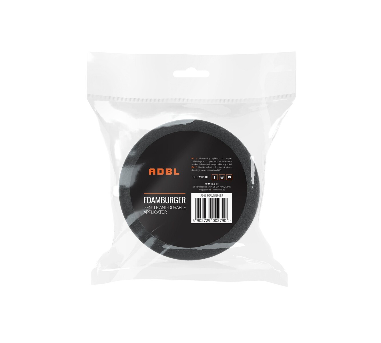 ADBL Foamburger е кръгъл пенен апликатор, предназначен за нанасяне на восък, sealant или препарати за пластмаси и гуми. Можете спокойно да го използвате и за ръчно полиране на лака. Висока издръжливост и дълготрайност. Диаметърът на апликатора е 9 cm.