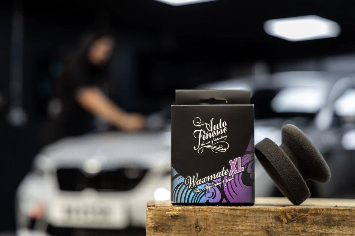 Auto Finesse Waxmate XL е ергономичен пенен апликатор от затворена целулоза за нанасяне на восъци. Auto FInesse Waxmate XL е специално разработен за големи опаковки восъци (150 g восъци от Auto Finesse или други производители). За разлика от обичайните апликатори, при които при вземане на восък ефективно използвате 30-50% от площта, при този апликатор използвате цялата нанасяща повърхност. Това ви гарантира най-ефективно и най-равномерно нанасяне на восъка върху каросерията на автомобила, като също така не образувате вдлъбнатина в средата на восъка. Ергономичната му форма улеснява употребата и комфортното нанасяне на всякаква защита, което ви улеснява при финиширащи работи.