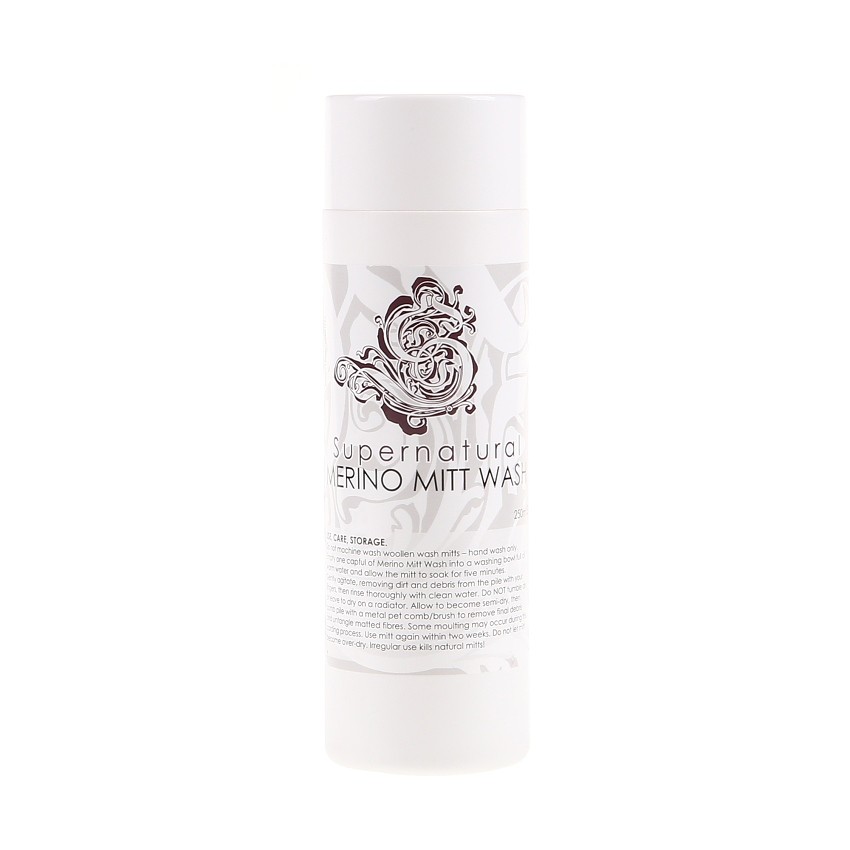 За съжаление няма лесен начин да запазите естествените вълнени миещи ръкавици в перфектно състояние за дълго време. Редовната употреба на този перилен препарат обаче може значително да помогне. Supernatural Merino Mitt Wash е много нежен перилен препарат, подходящ за деликатни вълнени влакна. Опаковка от 250 ml е достатъчна за около пет пранета на ръкавиците, затова го използвайте по‑скоро за по‑задълбочено почистване на миещите ръкавици, а не след всяко миене на автомобила.Основни характеристики