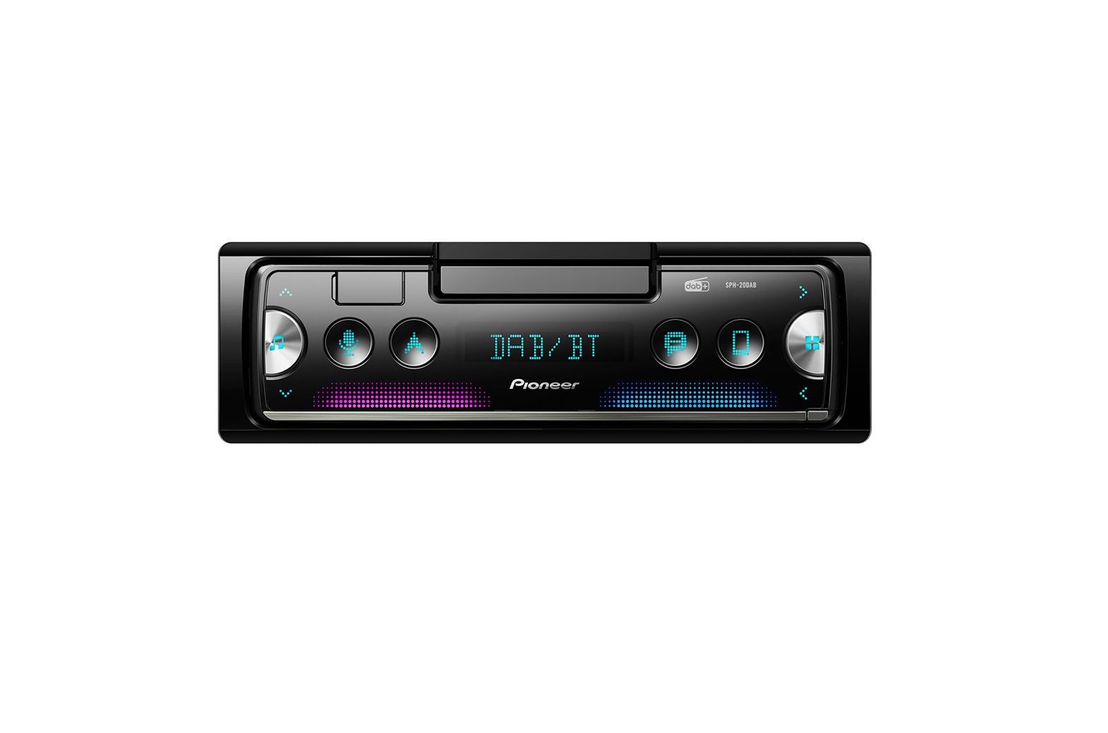 Умният приемник SPH-20DAB от Pioneer е проектиран да предоставя по-безопасен и по-лесен достъп до приложенията на смартфона, благодарение на четири специални бутона за достъп до любимите ви приложения. Безопасностни функции като разпознаване на глас подпомагат по-безопасното шофиране. Добавете към това (в комбинация с новото приложение Pioneer Smart Sync) различни настройки за цветове и звук, които предлагат отличен аудио опит. Просто закрепете вашия смартфон в здравия вграден държач, след това безжично или кабелно сдвойте безплатното приложение Pioneer Smart Sync и се насладете на по-интелигентно преживяване при шофиране. Pioneer SPH-20DAB представлява динамично развитие в областта на свързаността на смартфоните и забавлението в автомобила. Предлага модерна свързаност със смартфон, подобрена достъпност и качество на звука.