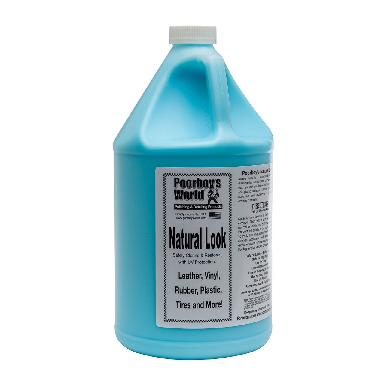 Poorboy's Natural Look - почистител за арматурното табло и други пластмаси в интериора на автомобила. На водна основа и с патентована защита срещу UVA и UVB лъчение. Оставя върху пластмаса, винил или кожа сух, чист и нов вид. Резултатът след почистване е матов ефект. На допир не лепи, не е мазен и освен това приятно ухае на череши. Този почистител за пластмаси също унищожава нежелани бактерии.